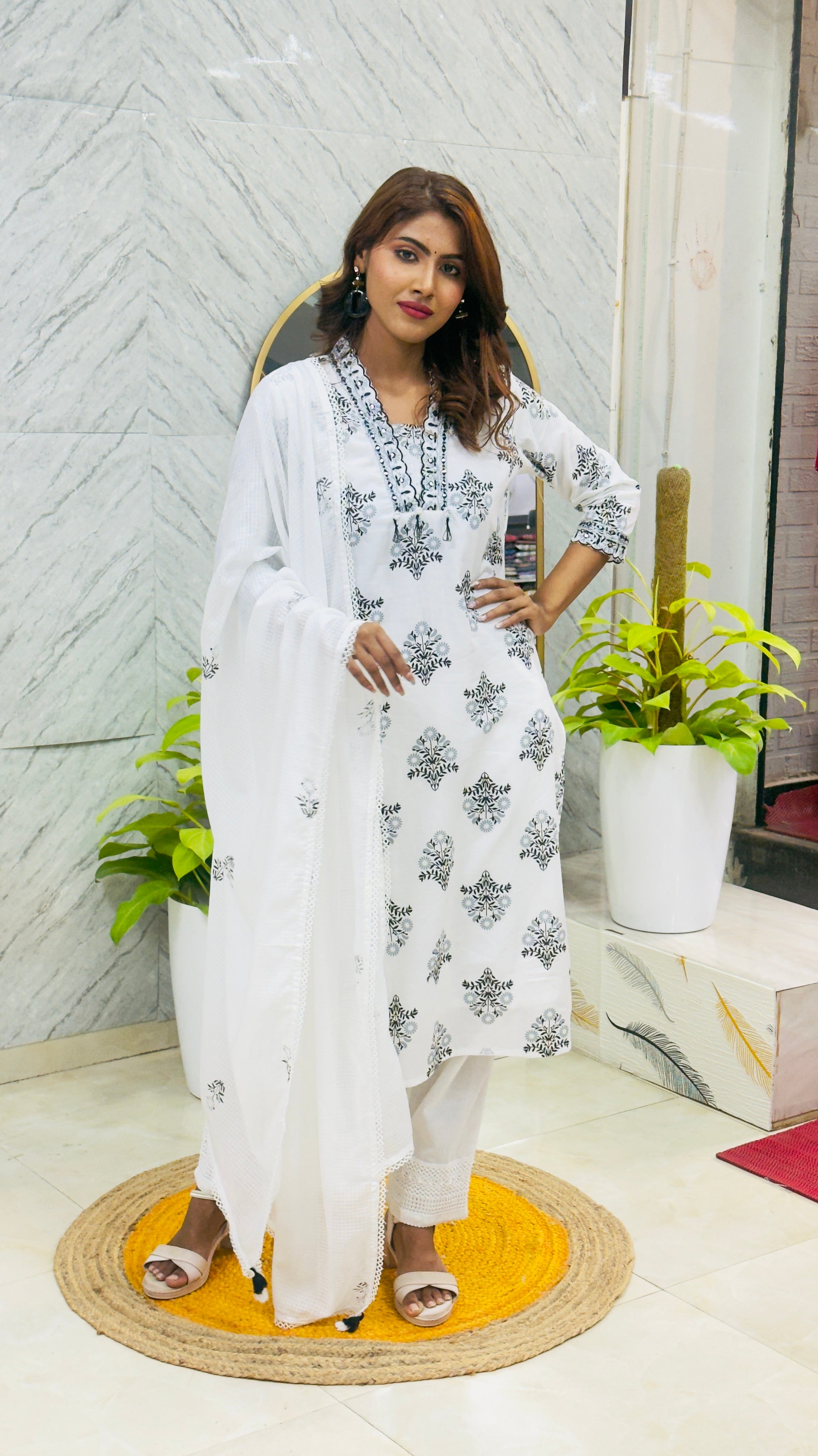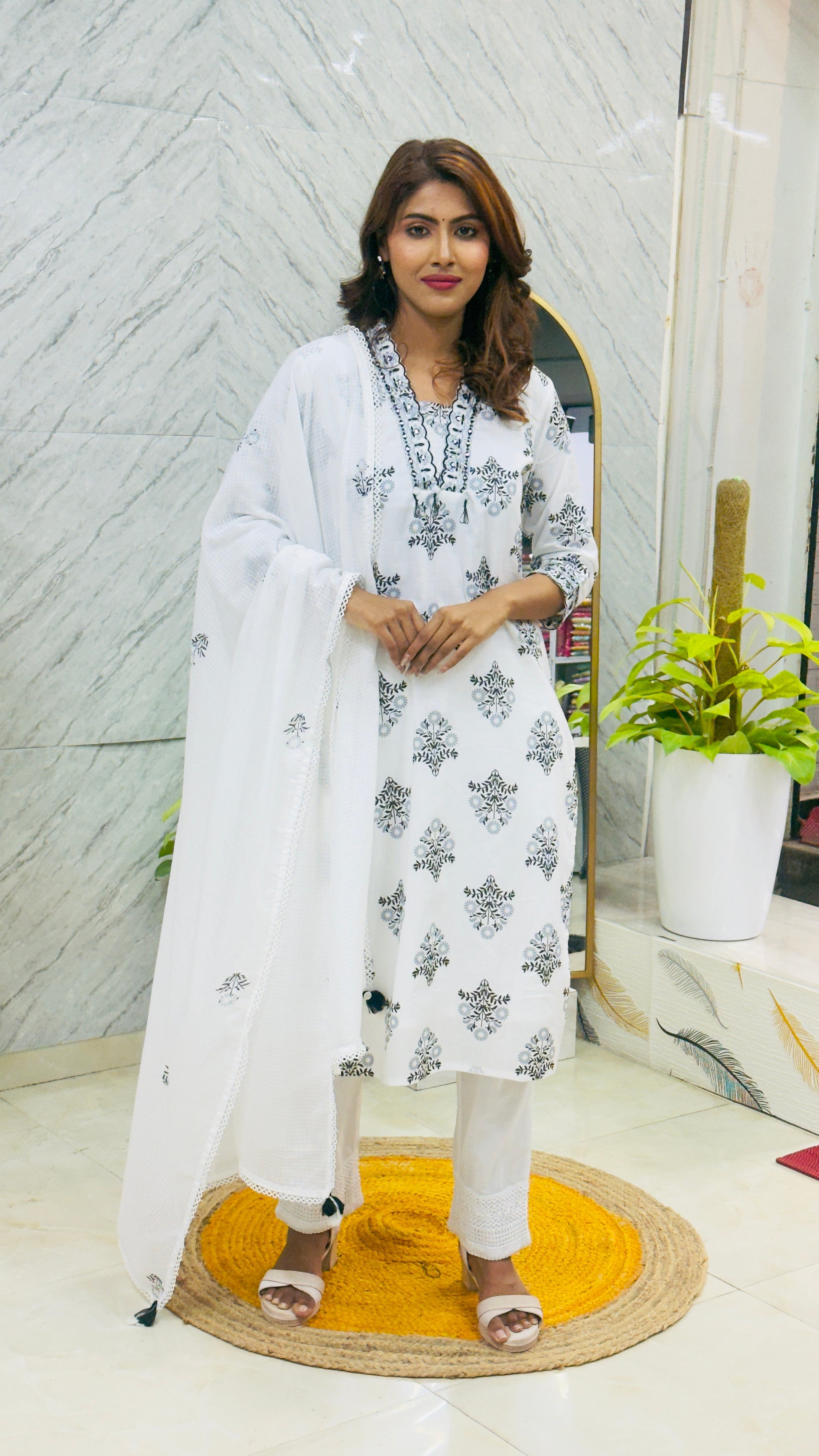 Black & White Kota Doriya with Dupatta