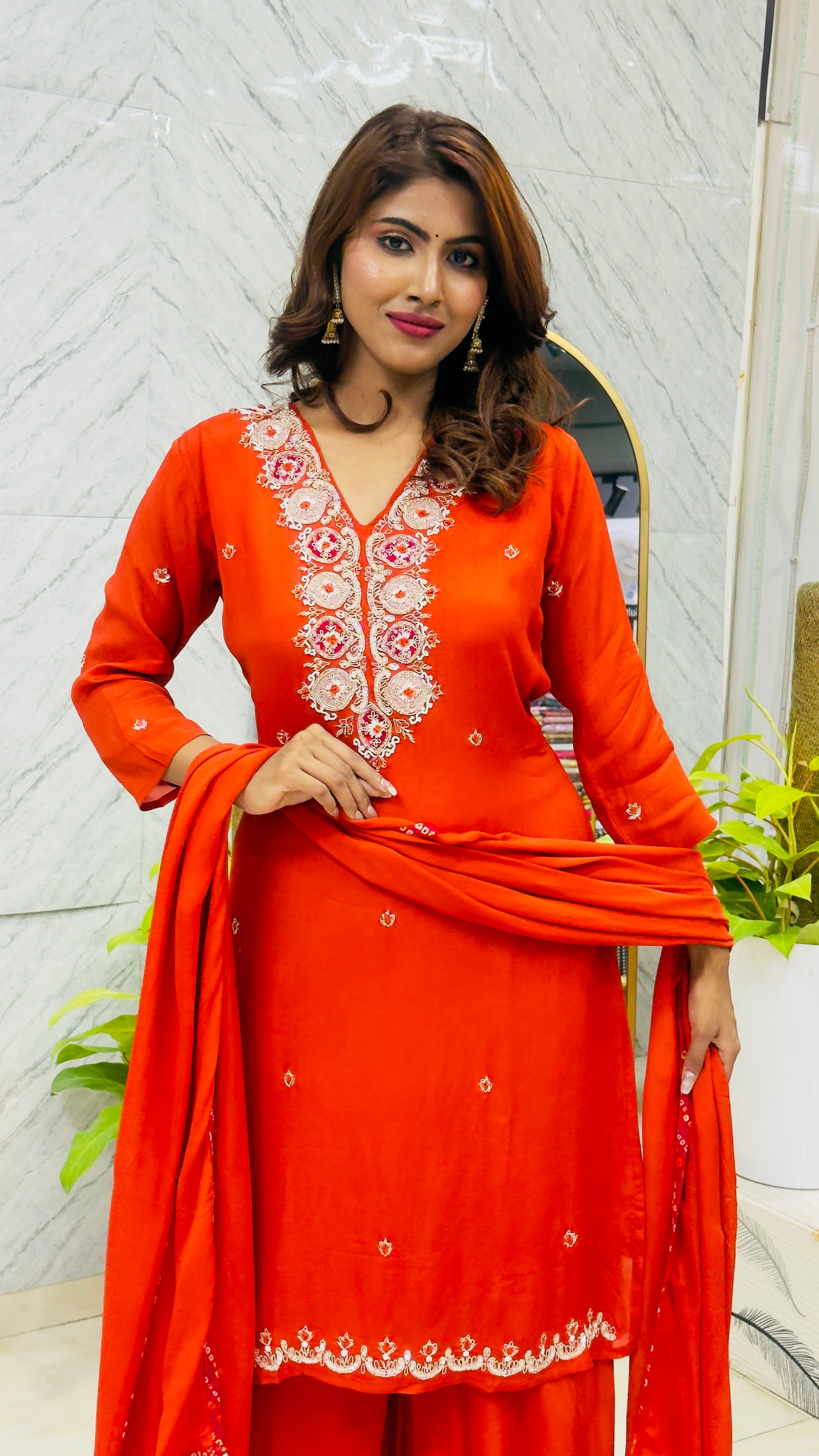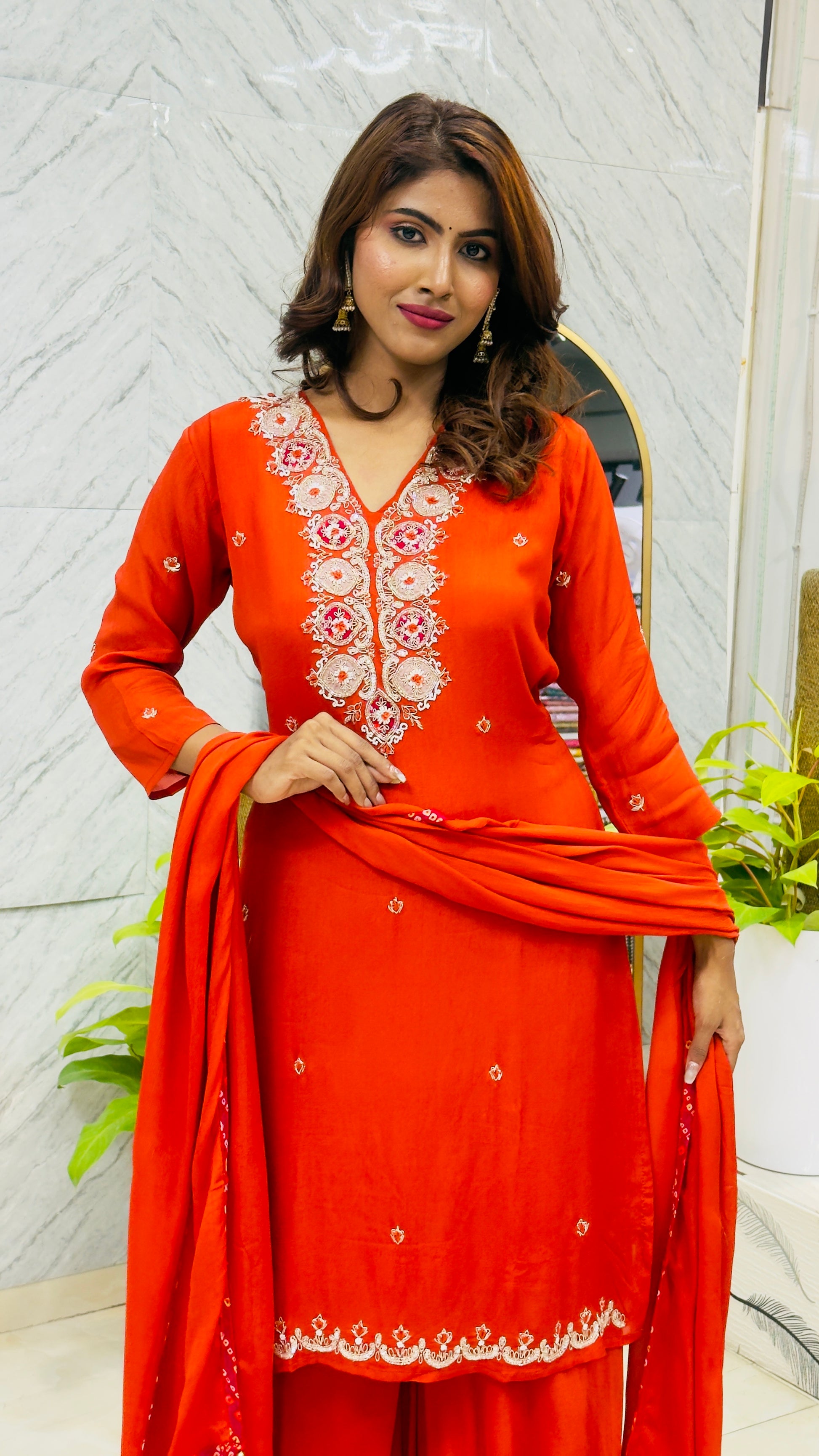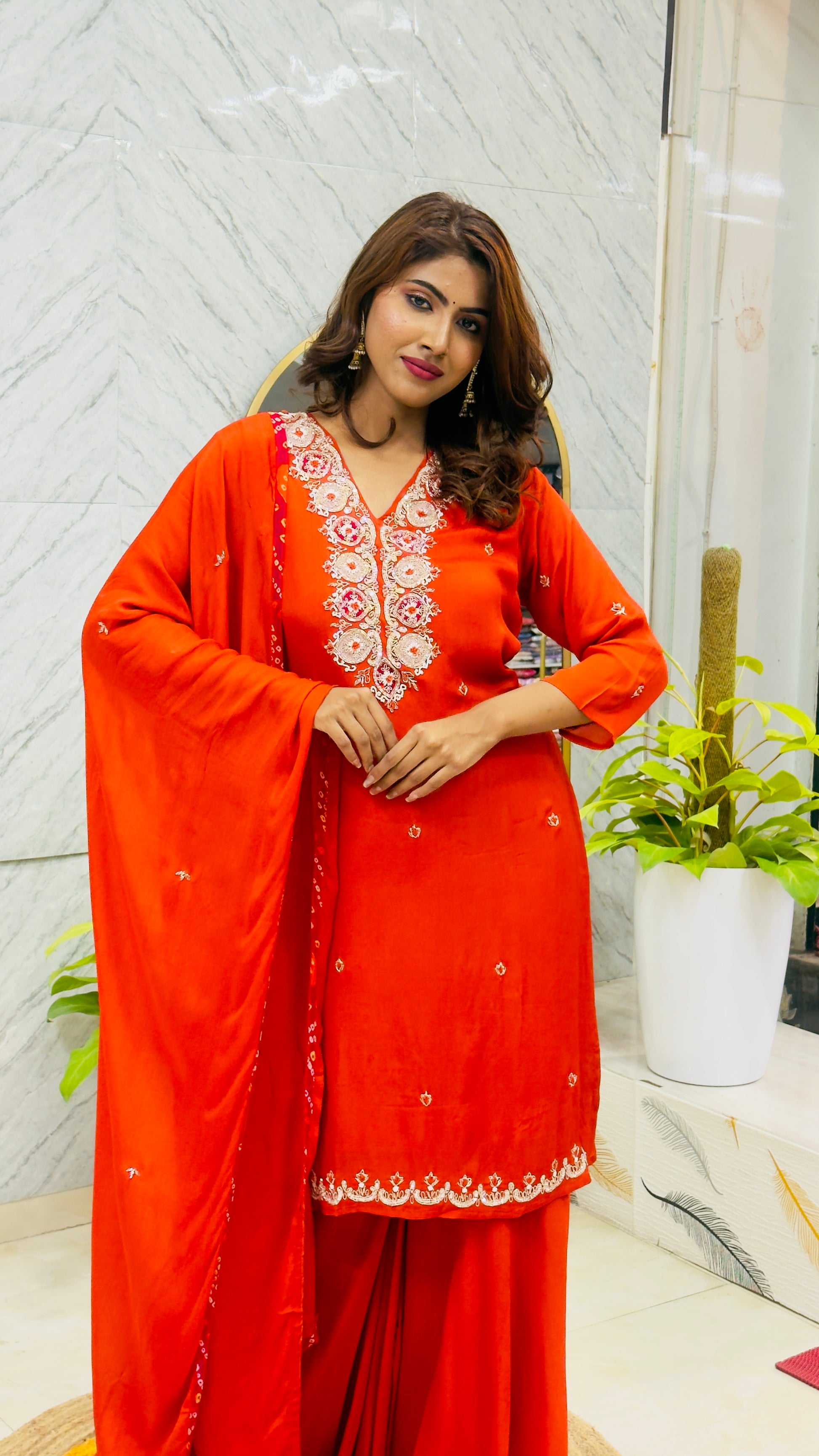 Premium Georgette Palazzo Set with Handwork & Chiffon Dupatta β Orange