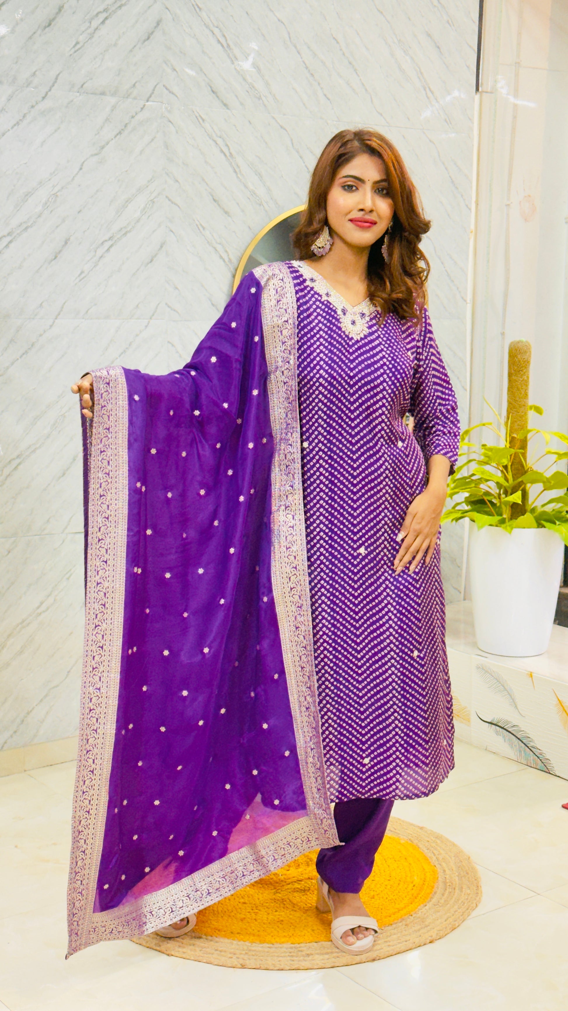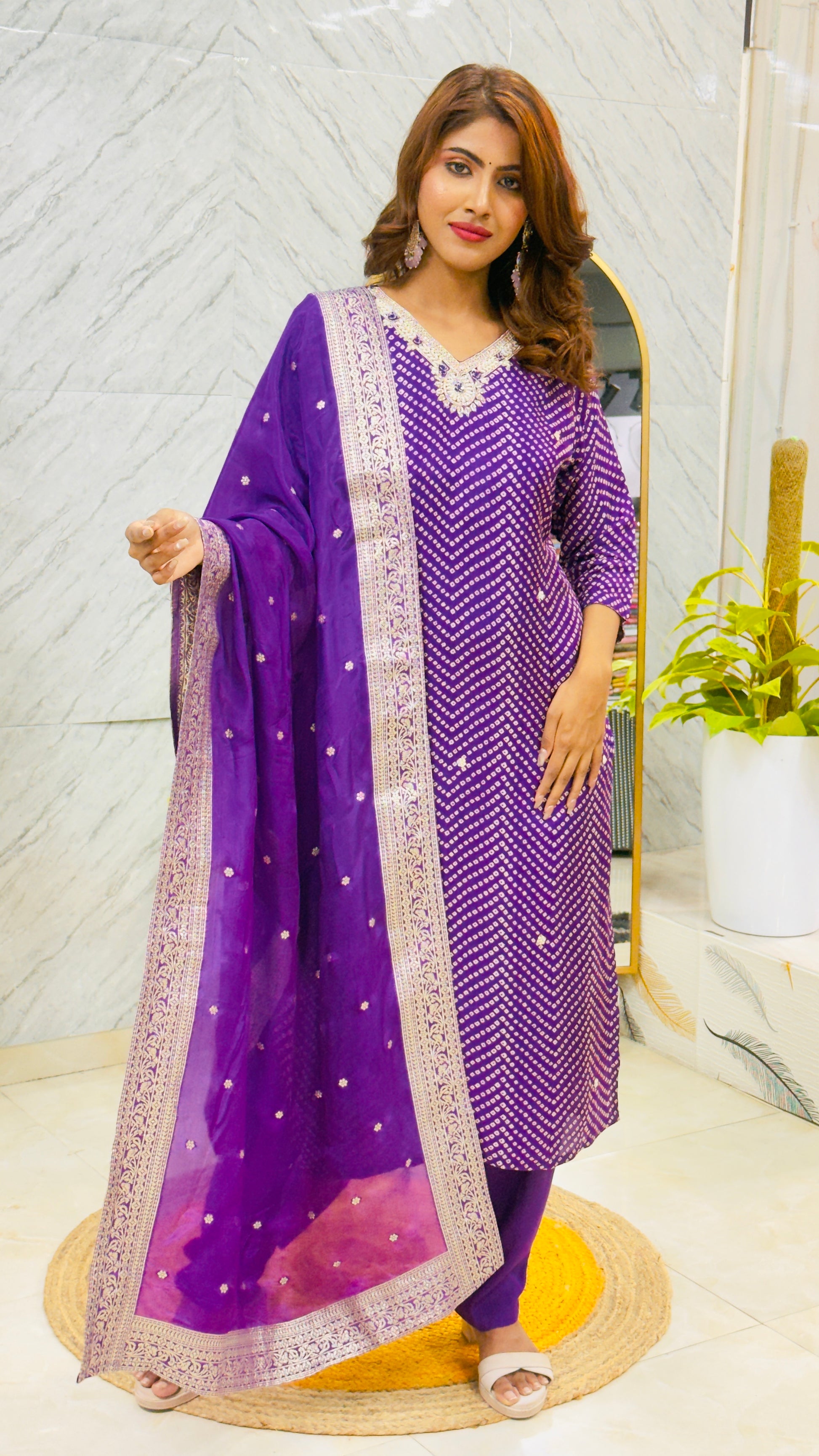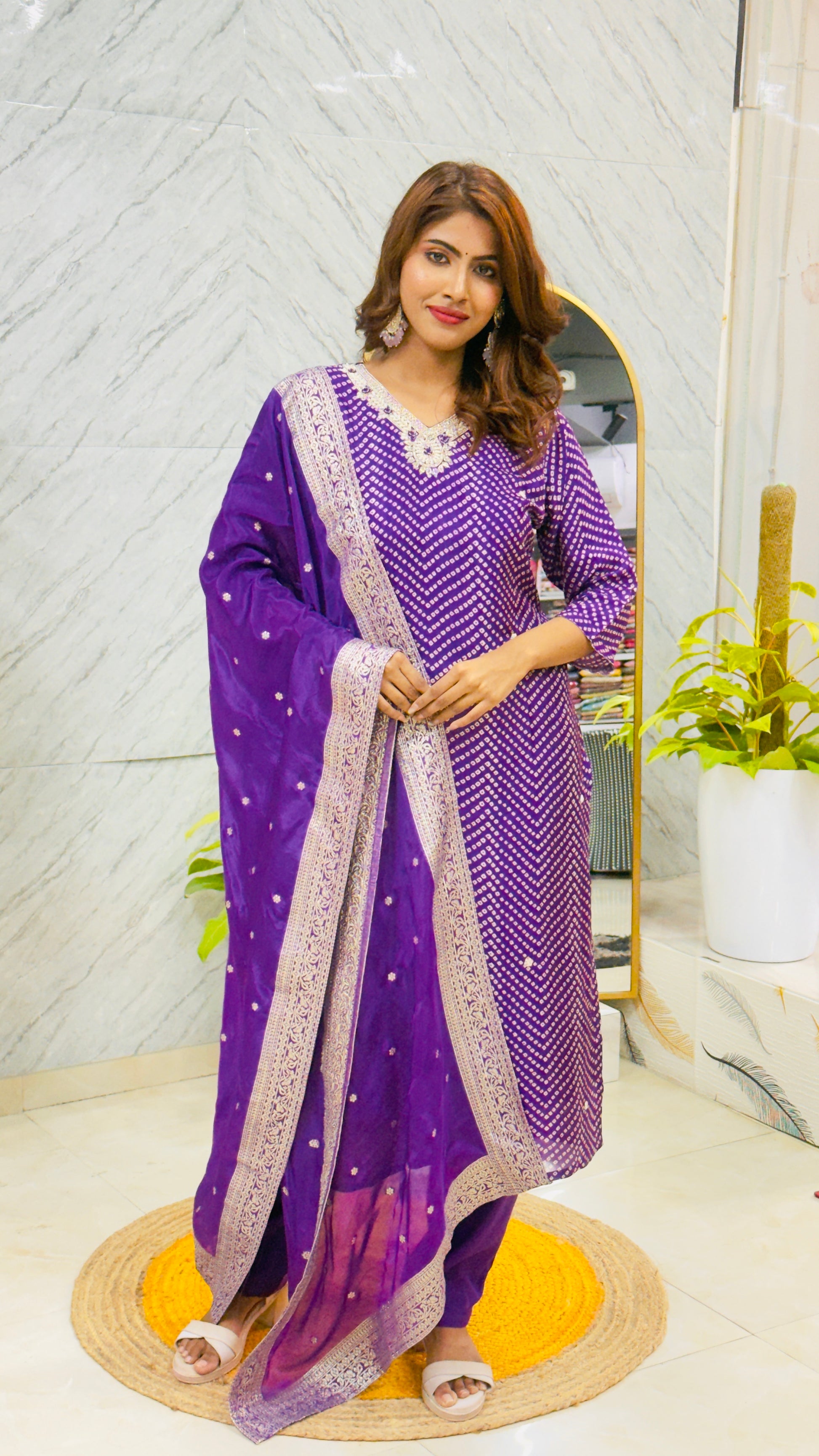 Premium Silk Suit with Handwork paired with Organza Dupatta - Purple