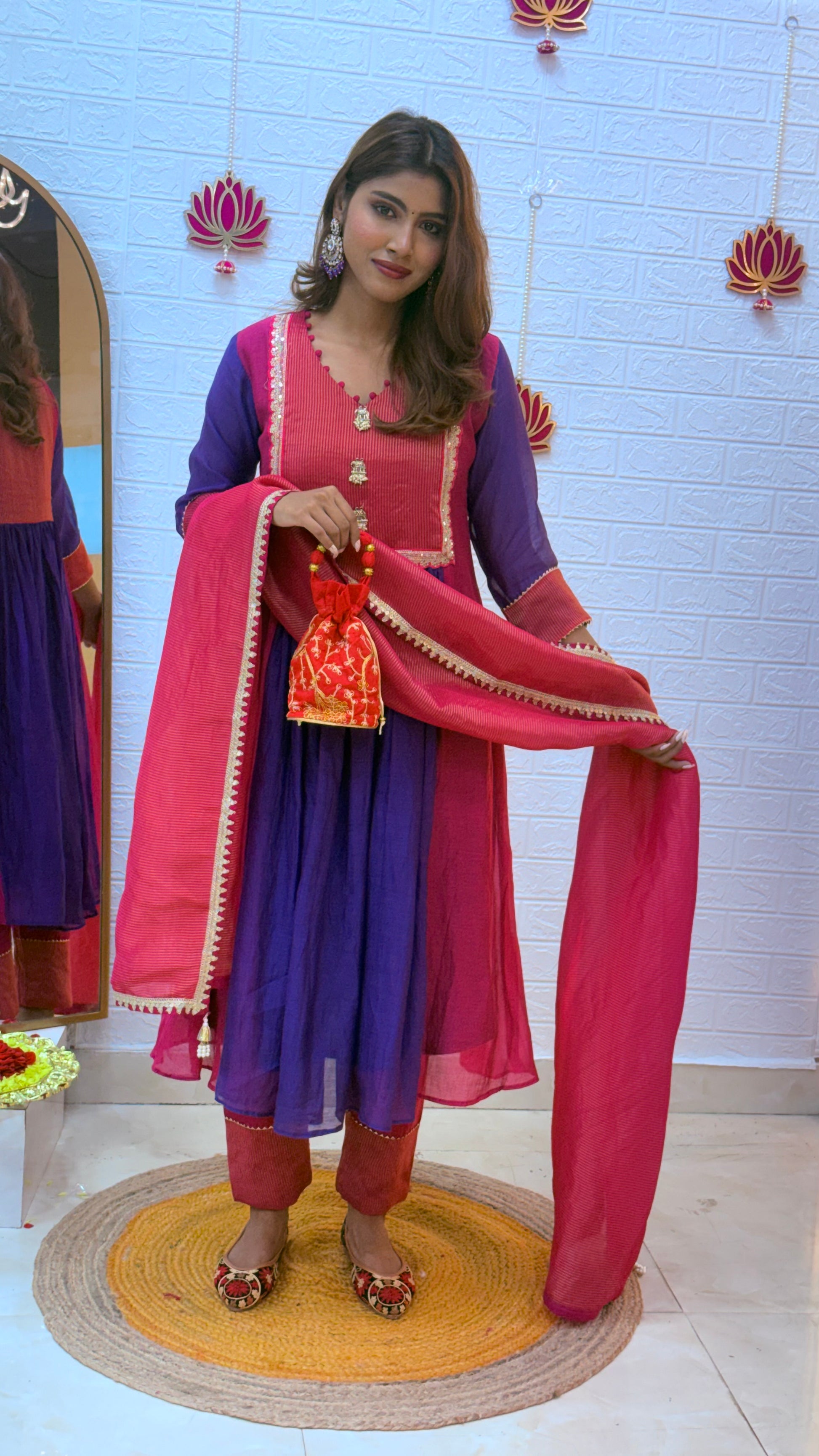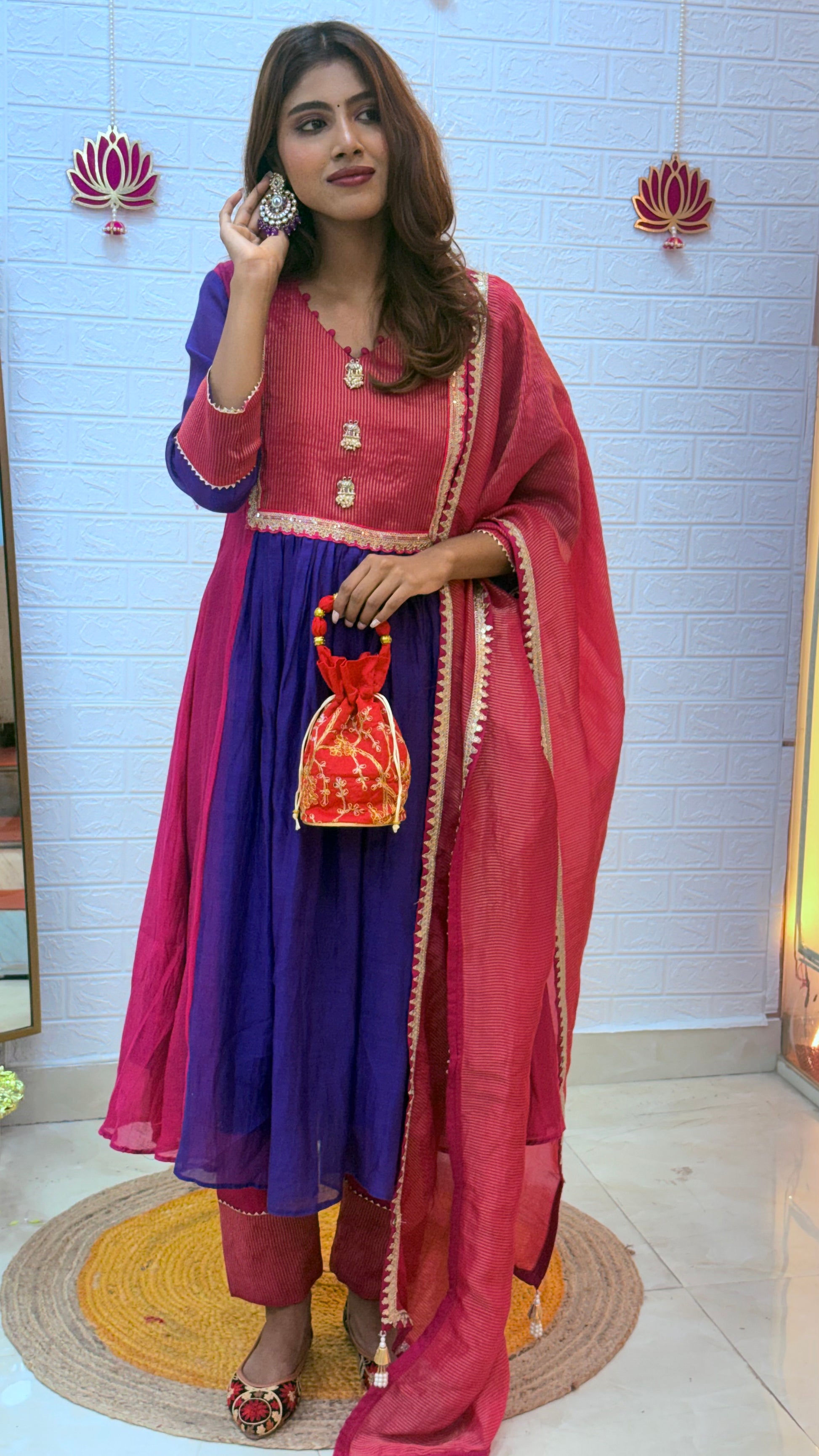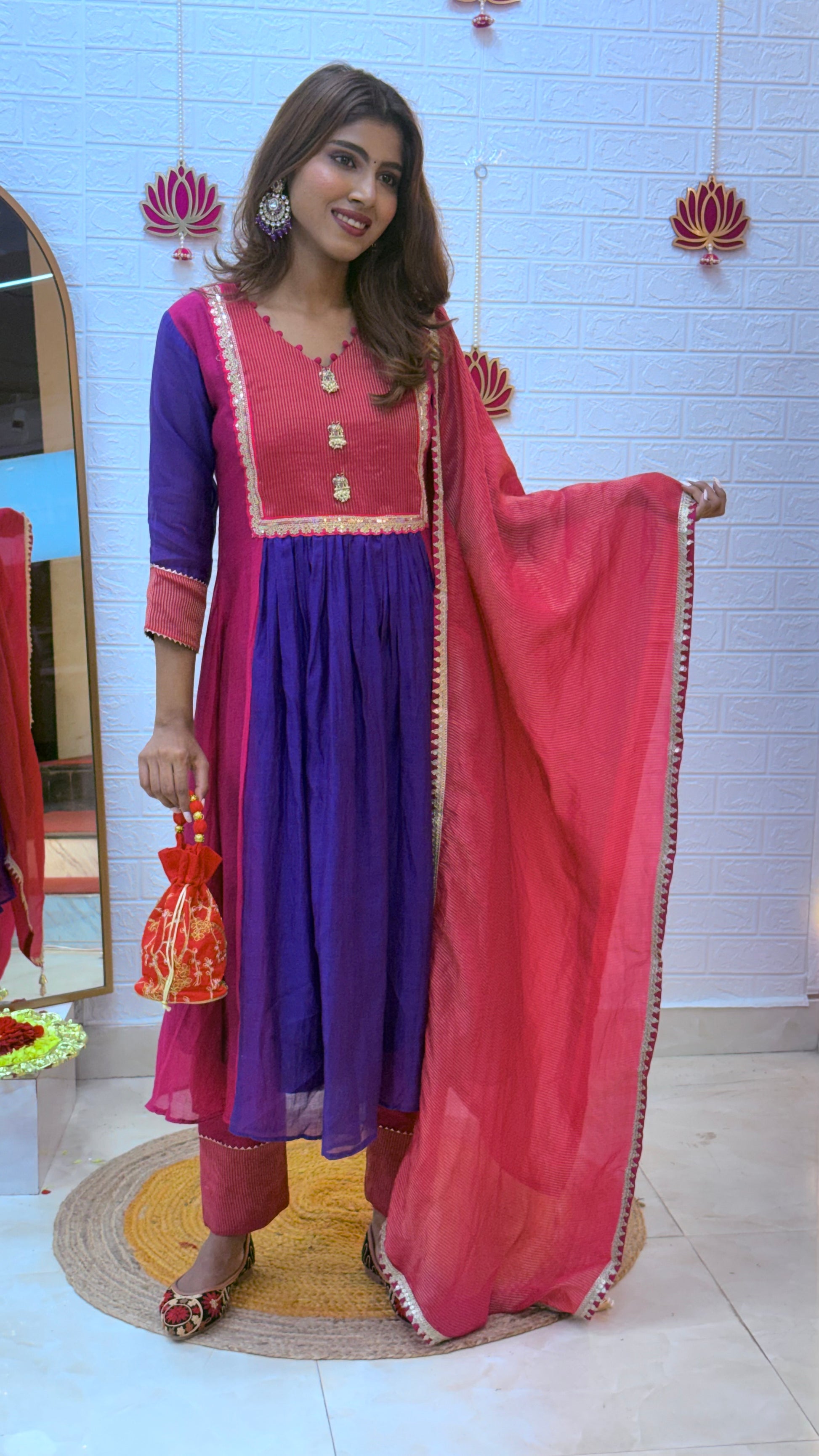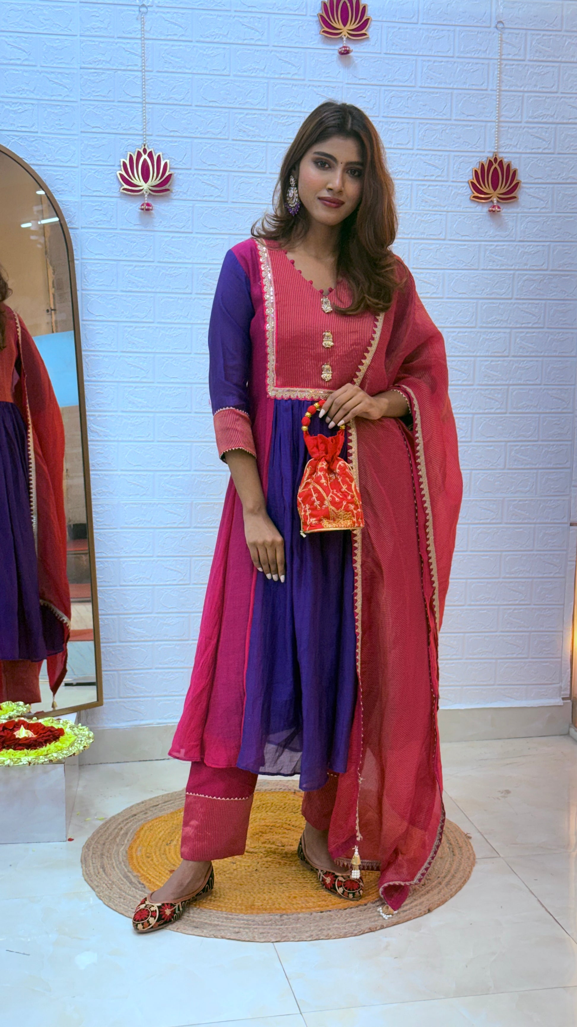 💗 Premium Mul Chanderi Suit with Tissue Dupatta – Pink & Purple