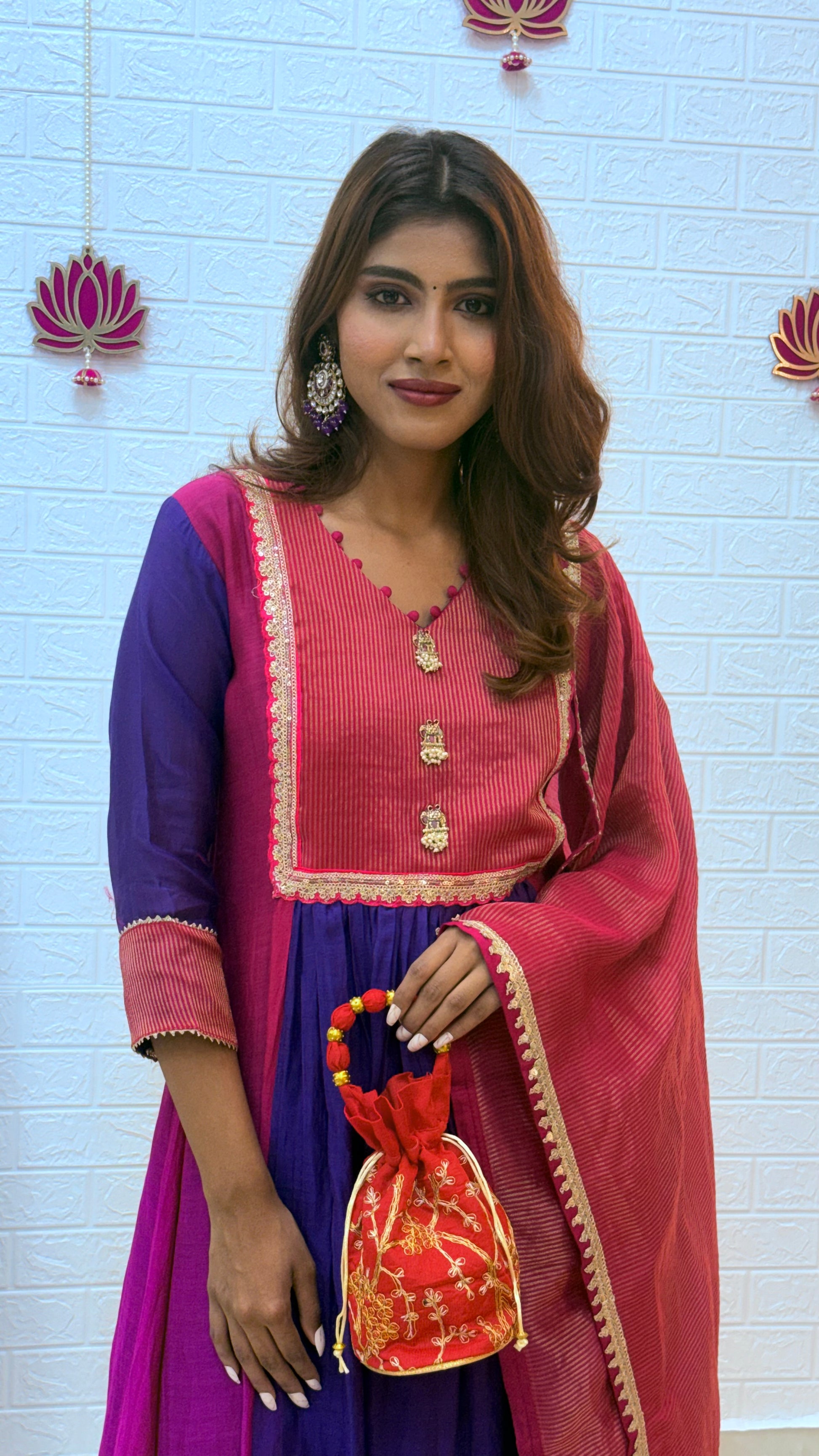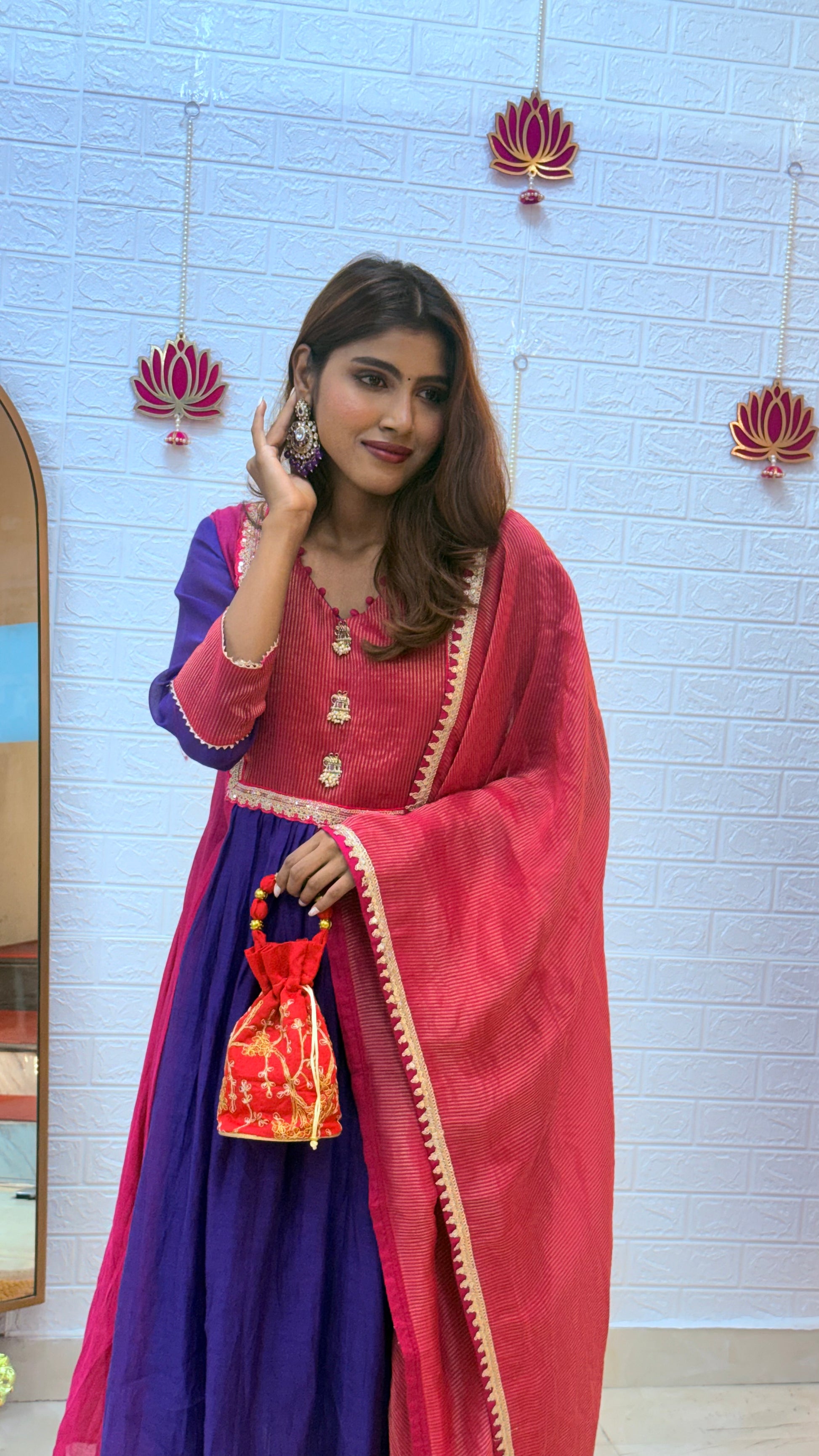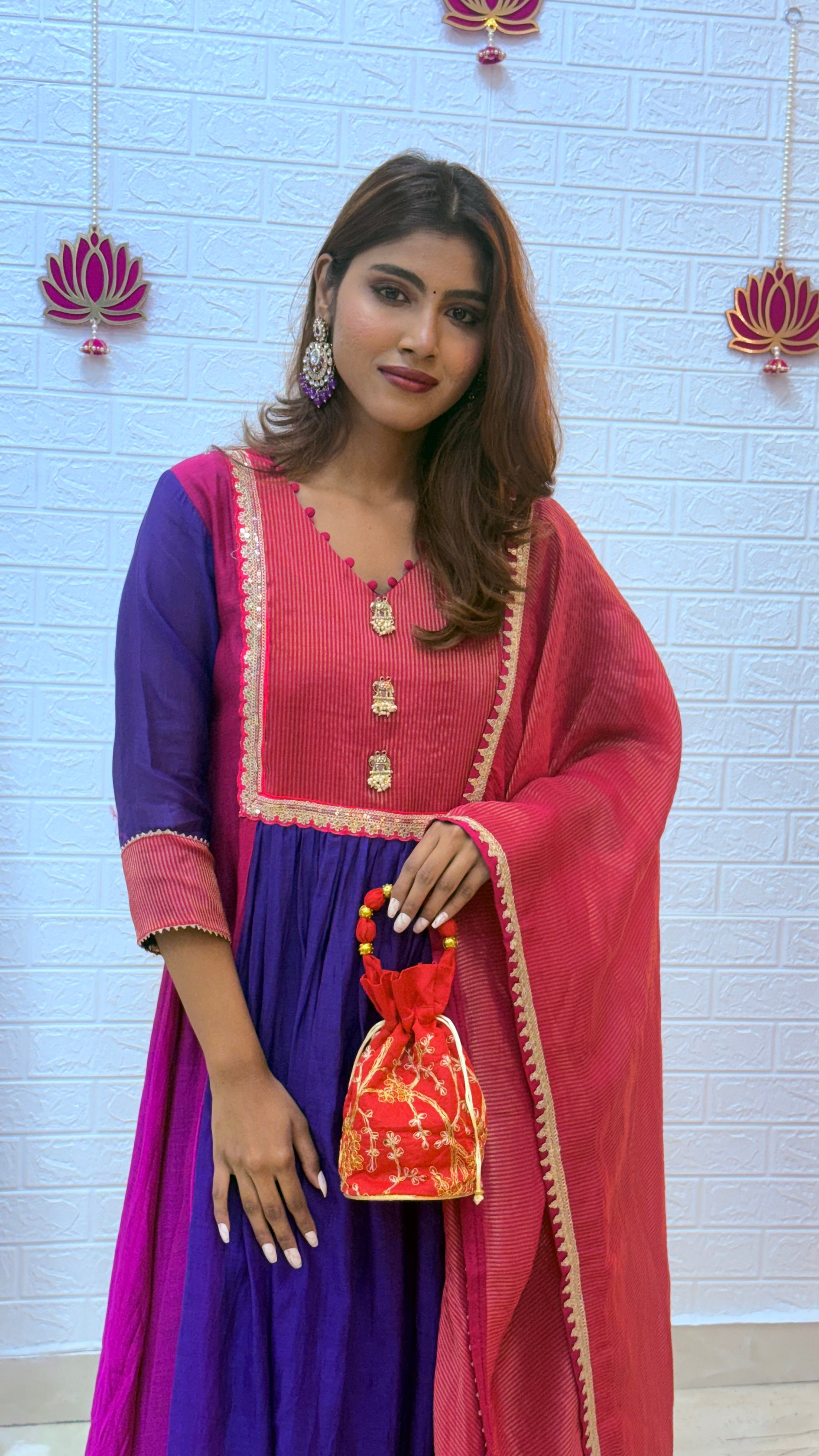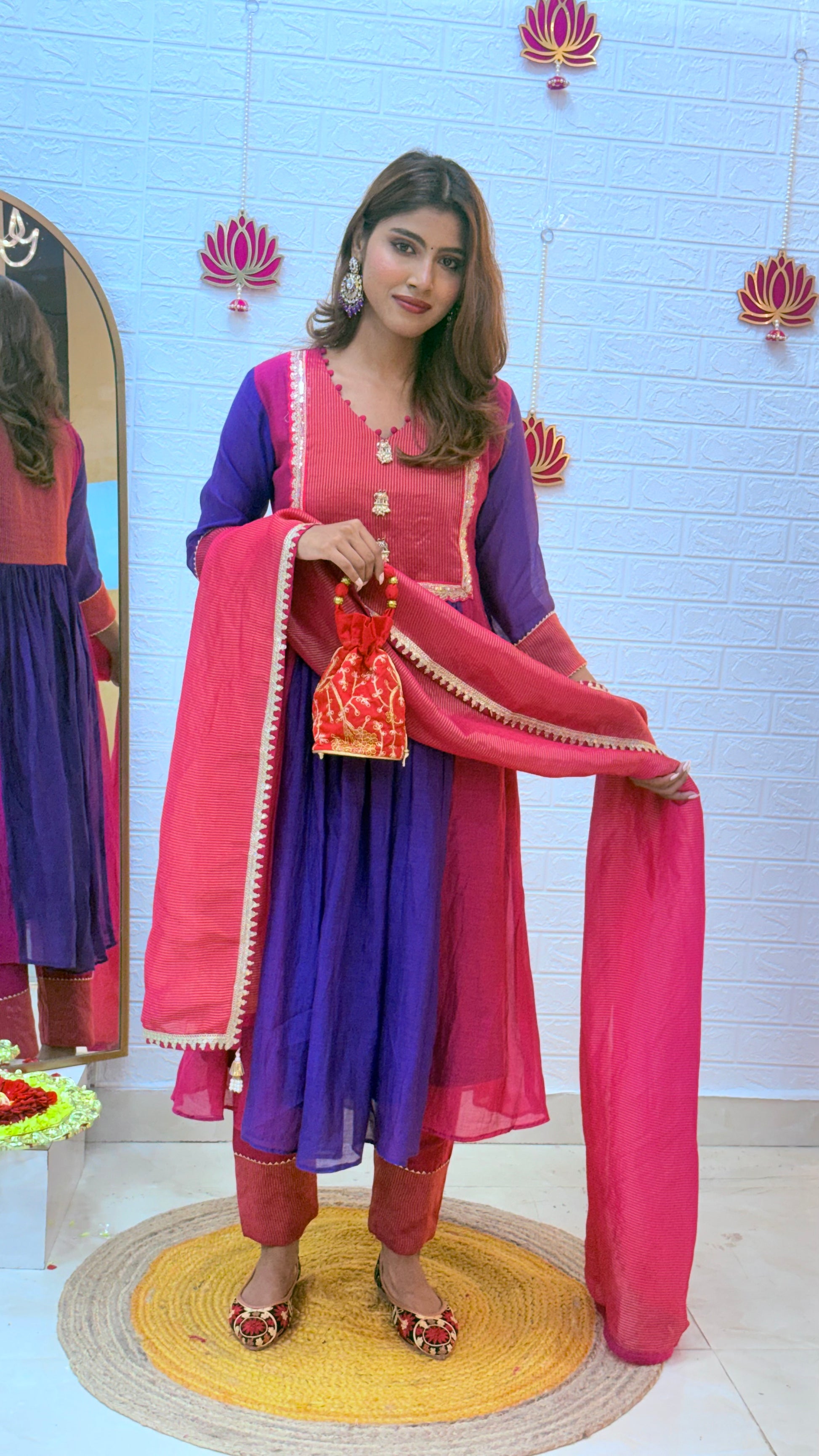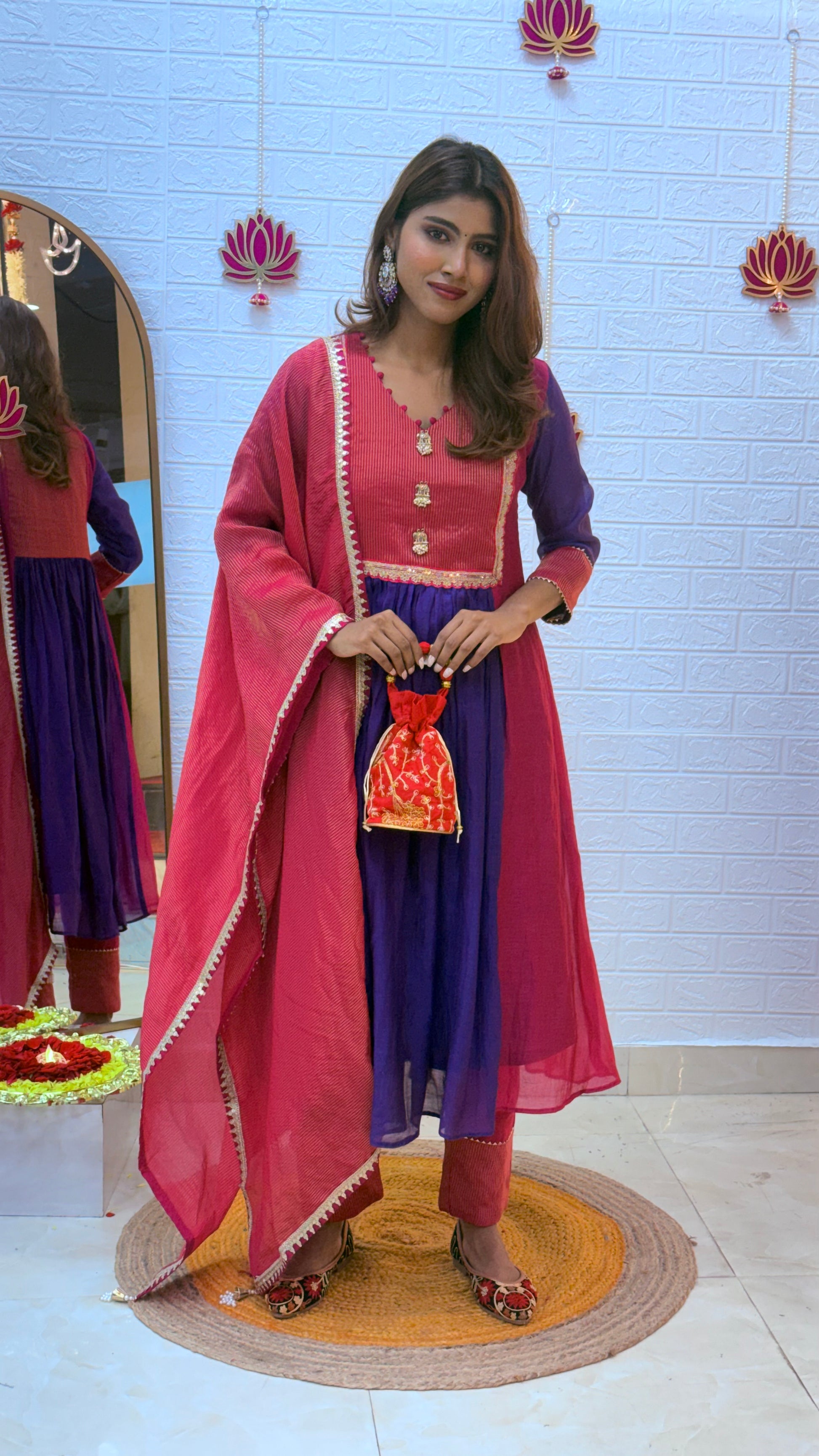 💗 Premium Mul Chanderi Suit with Tissue Dupatta – Pink & Purple