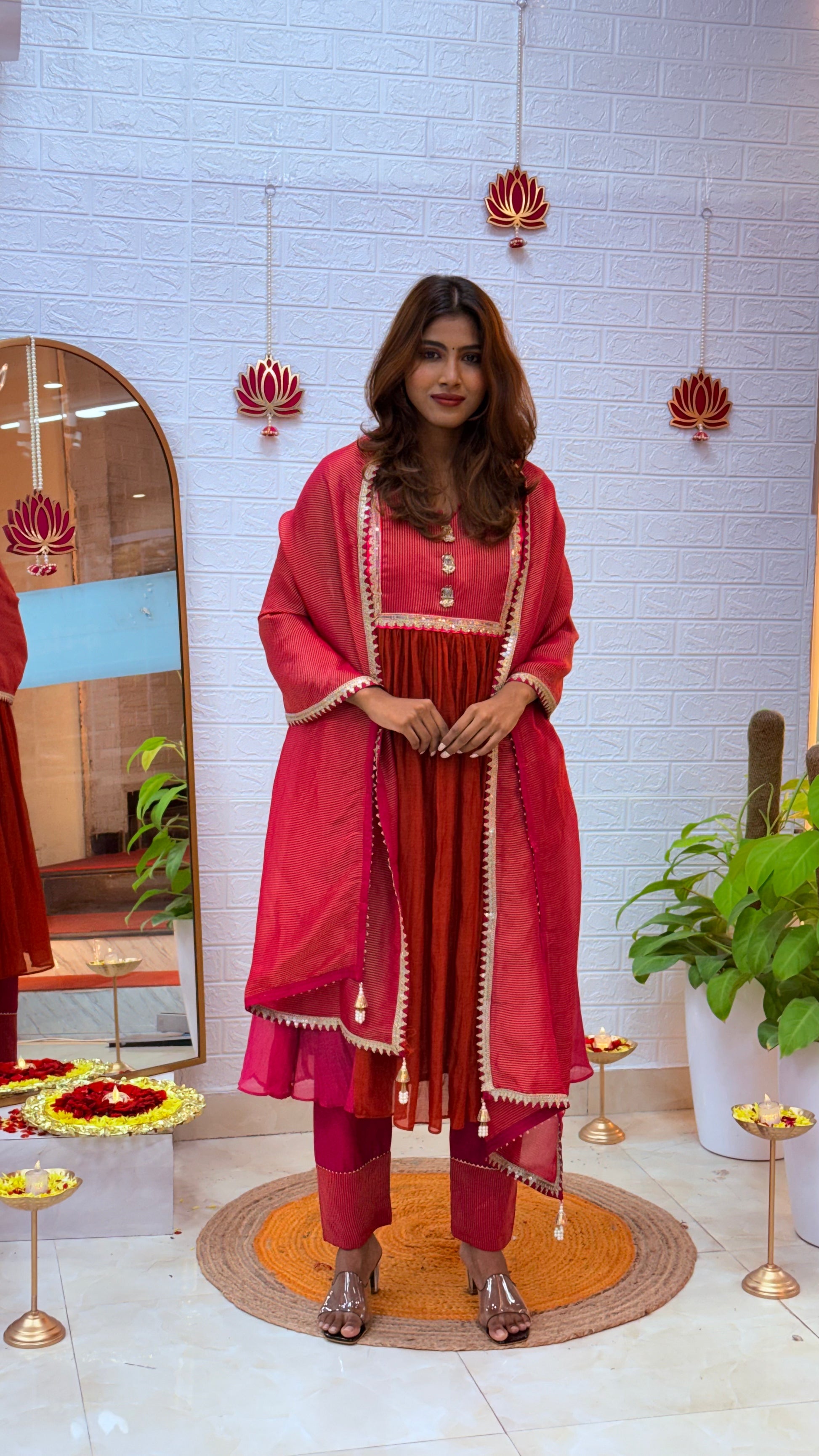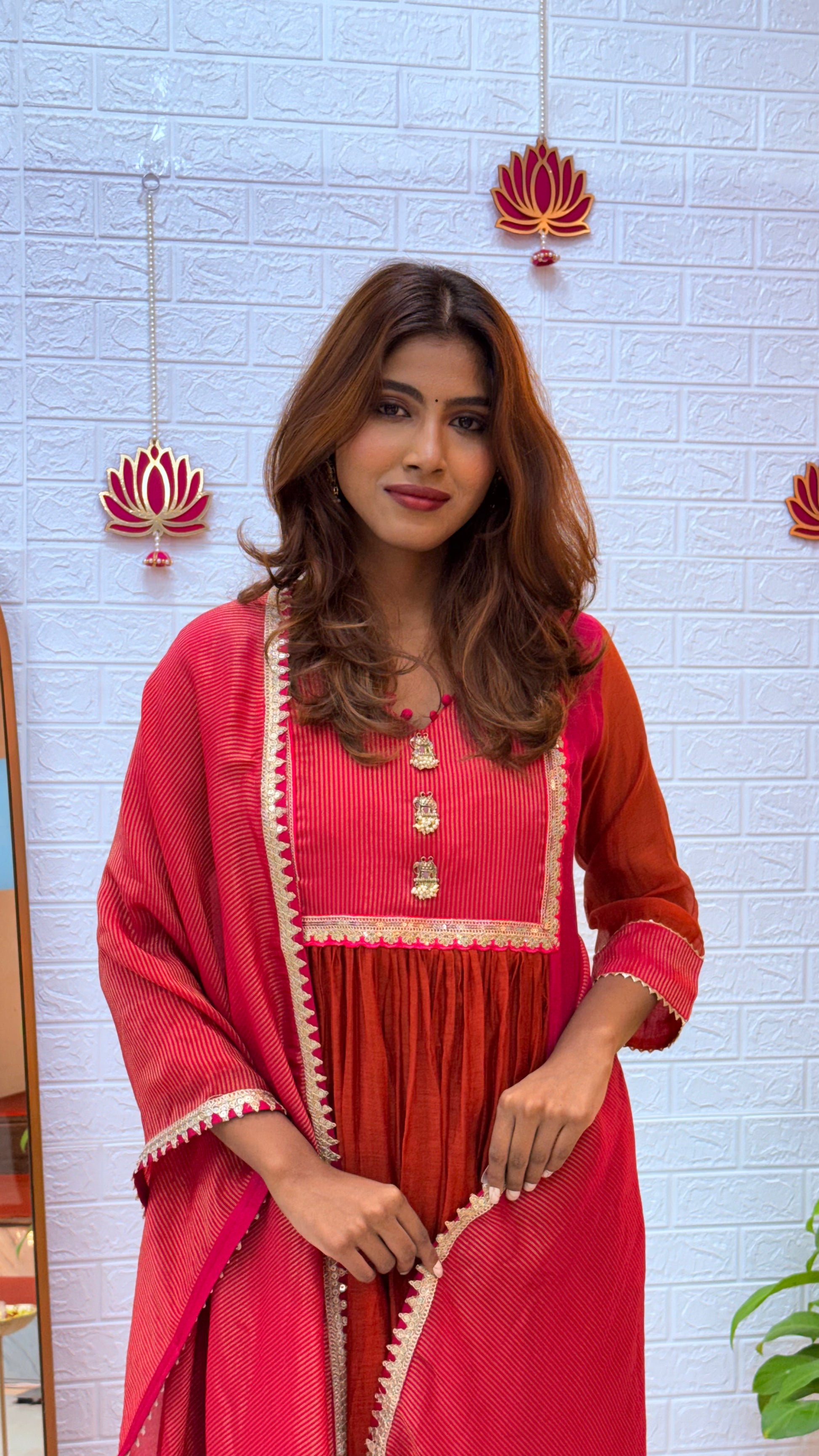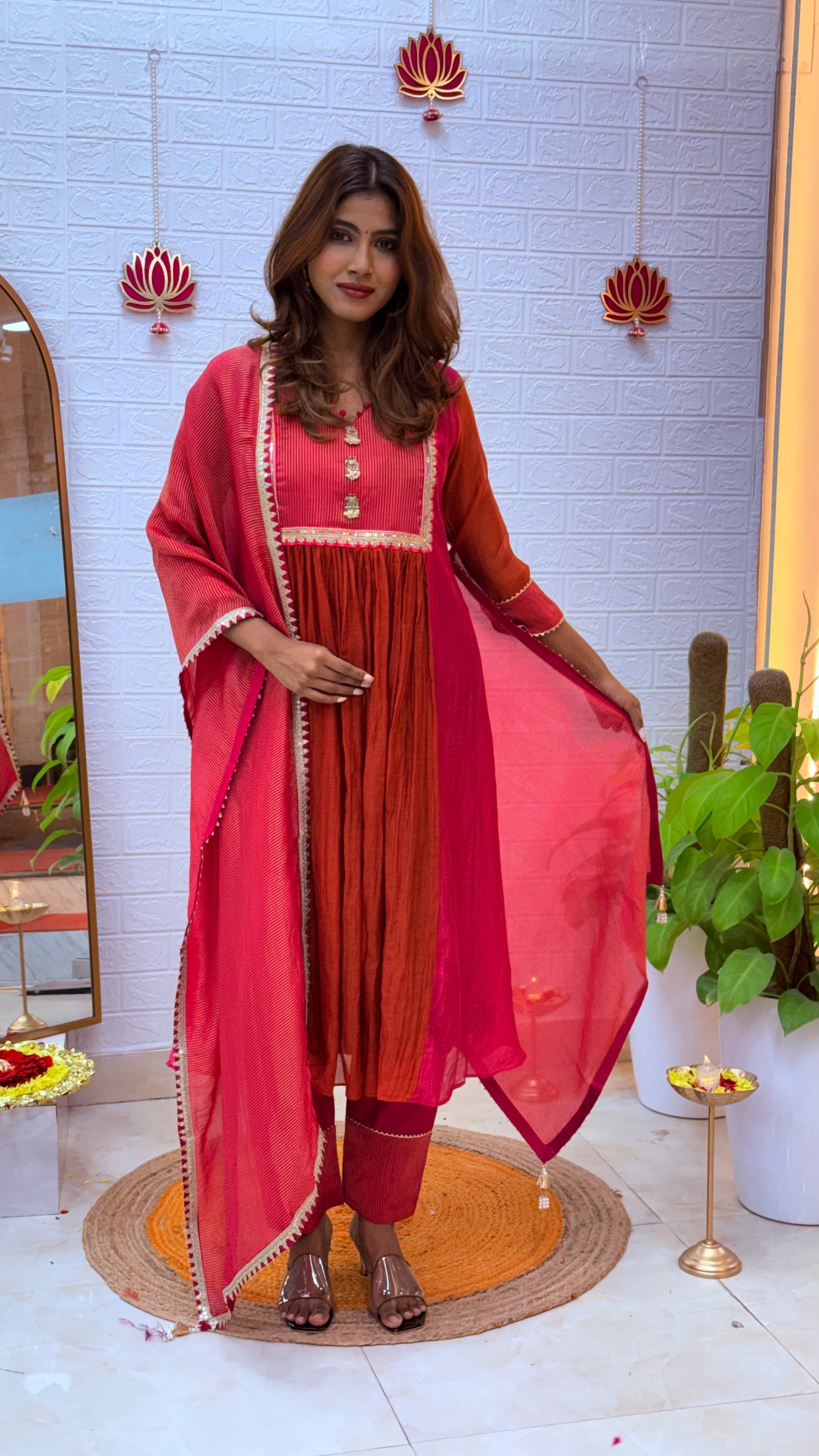 💗 Premium Mul Chanderi Suit with Tissue Dupatta – Pink & Orange