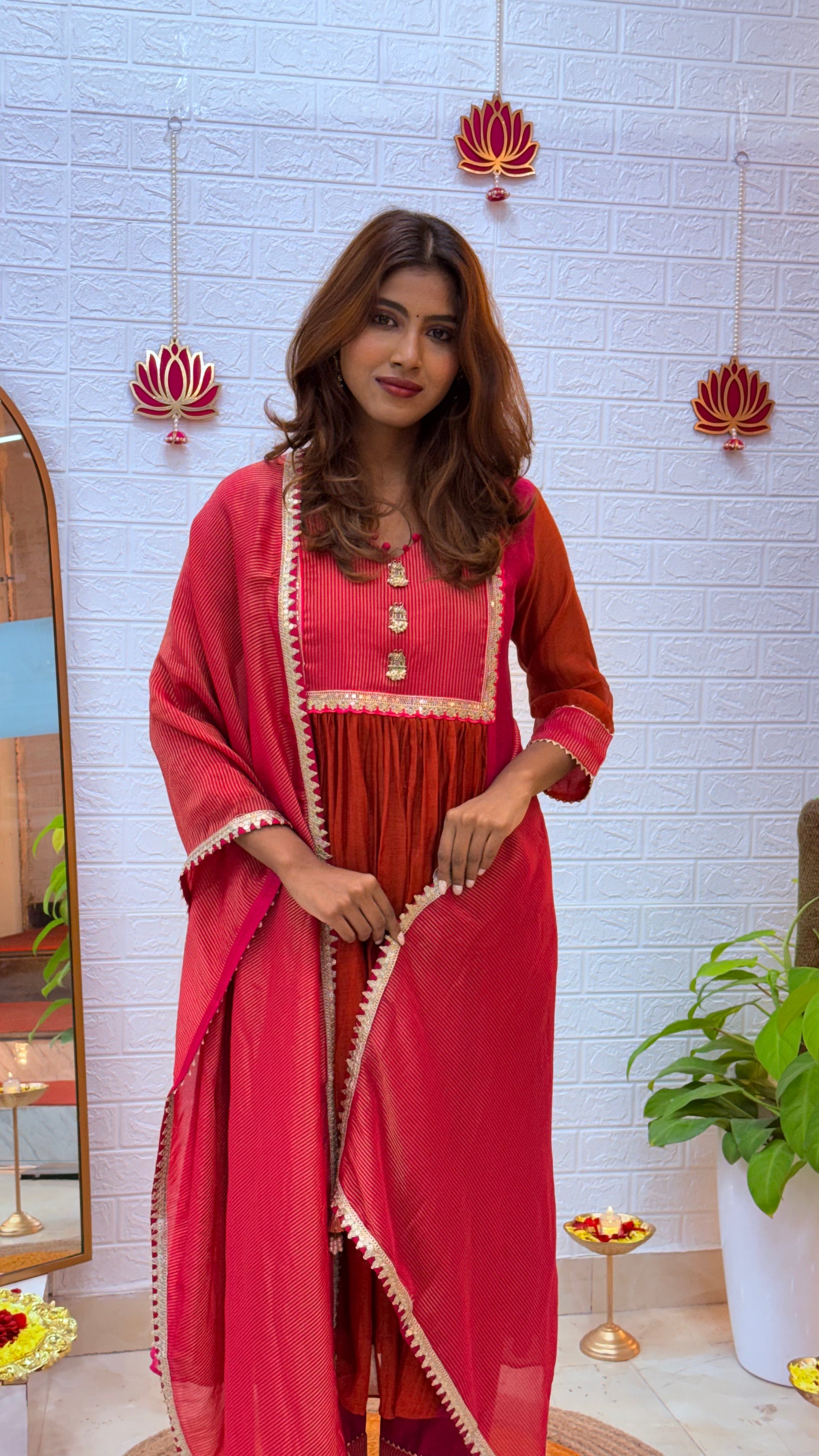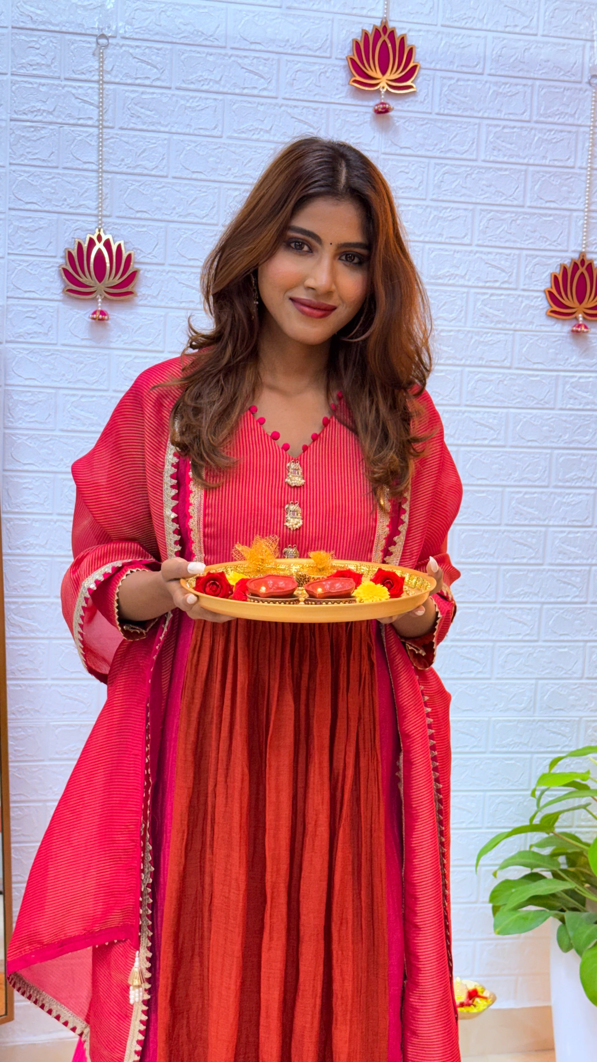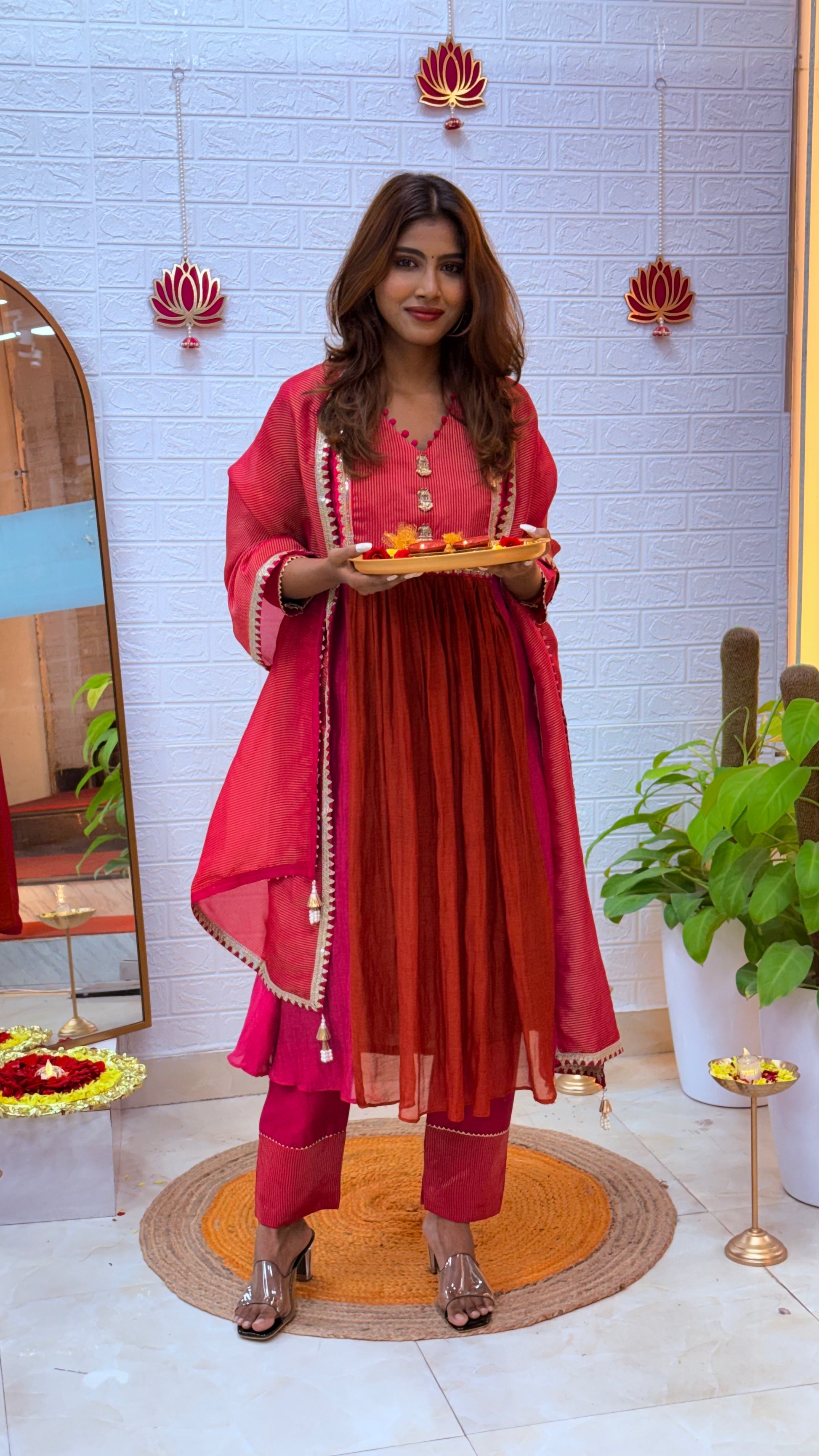 💗 Premium Mul Chanderi Suit with Tissue Dupatta – Pink & Orange