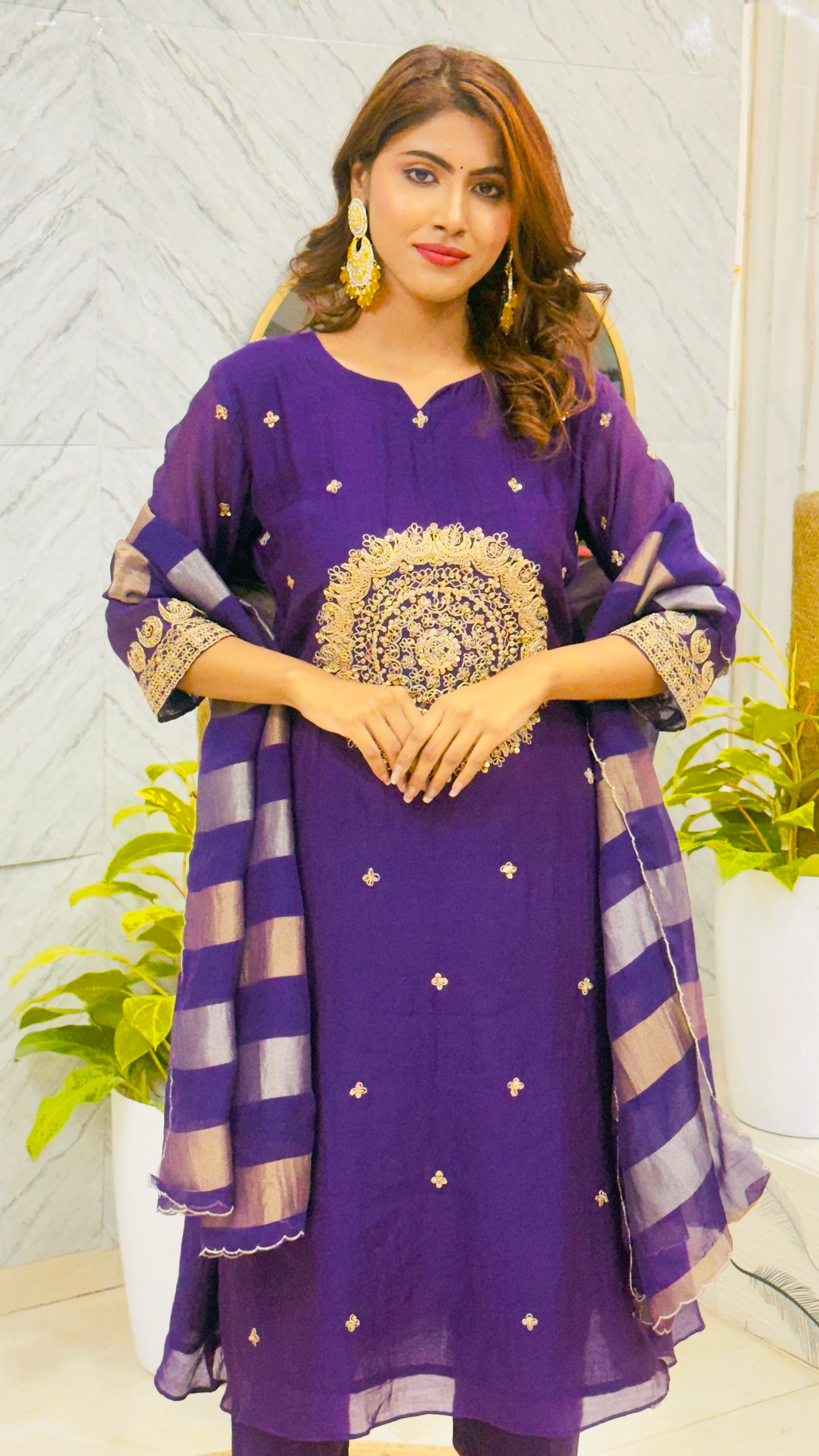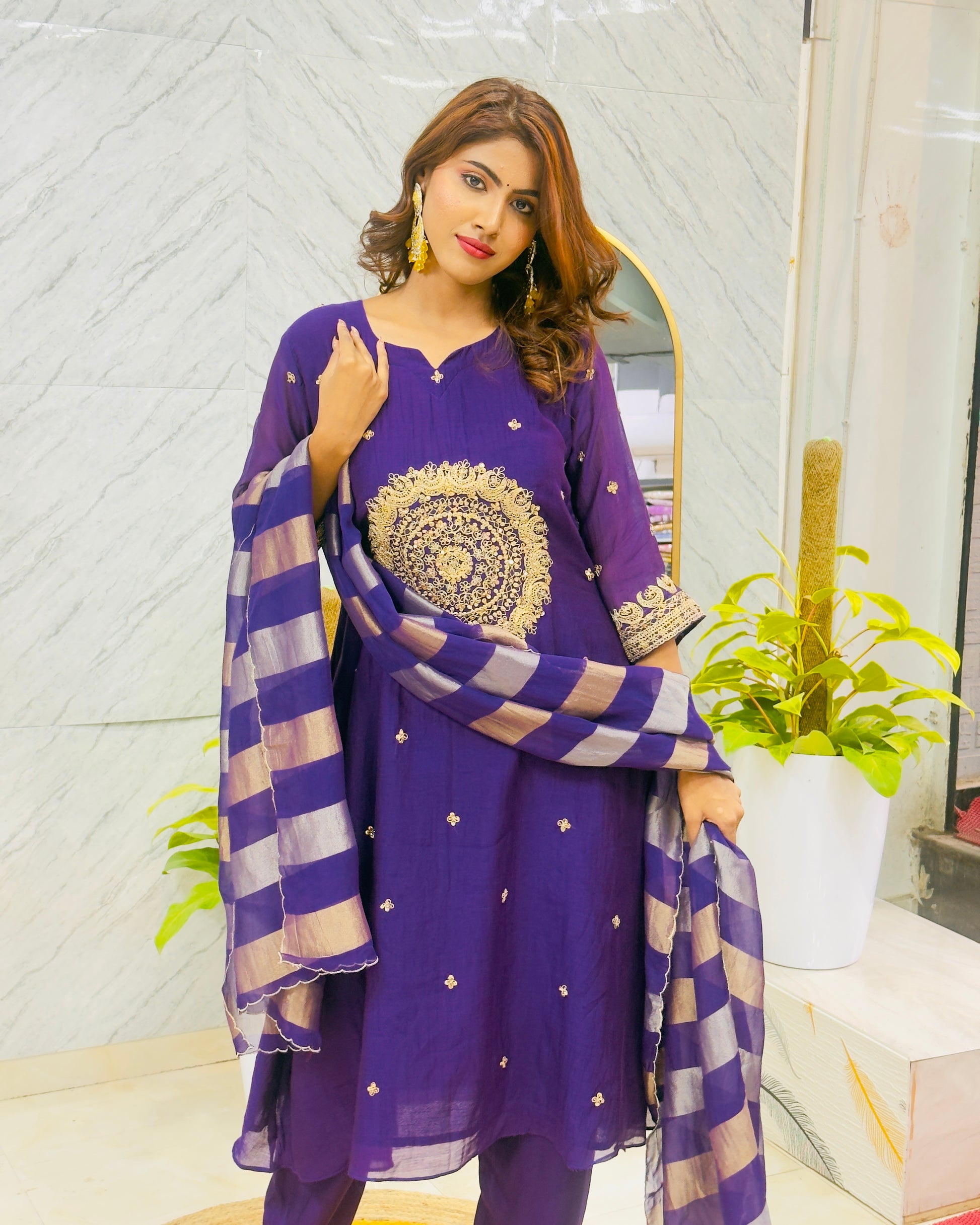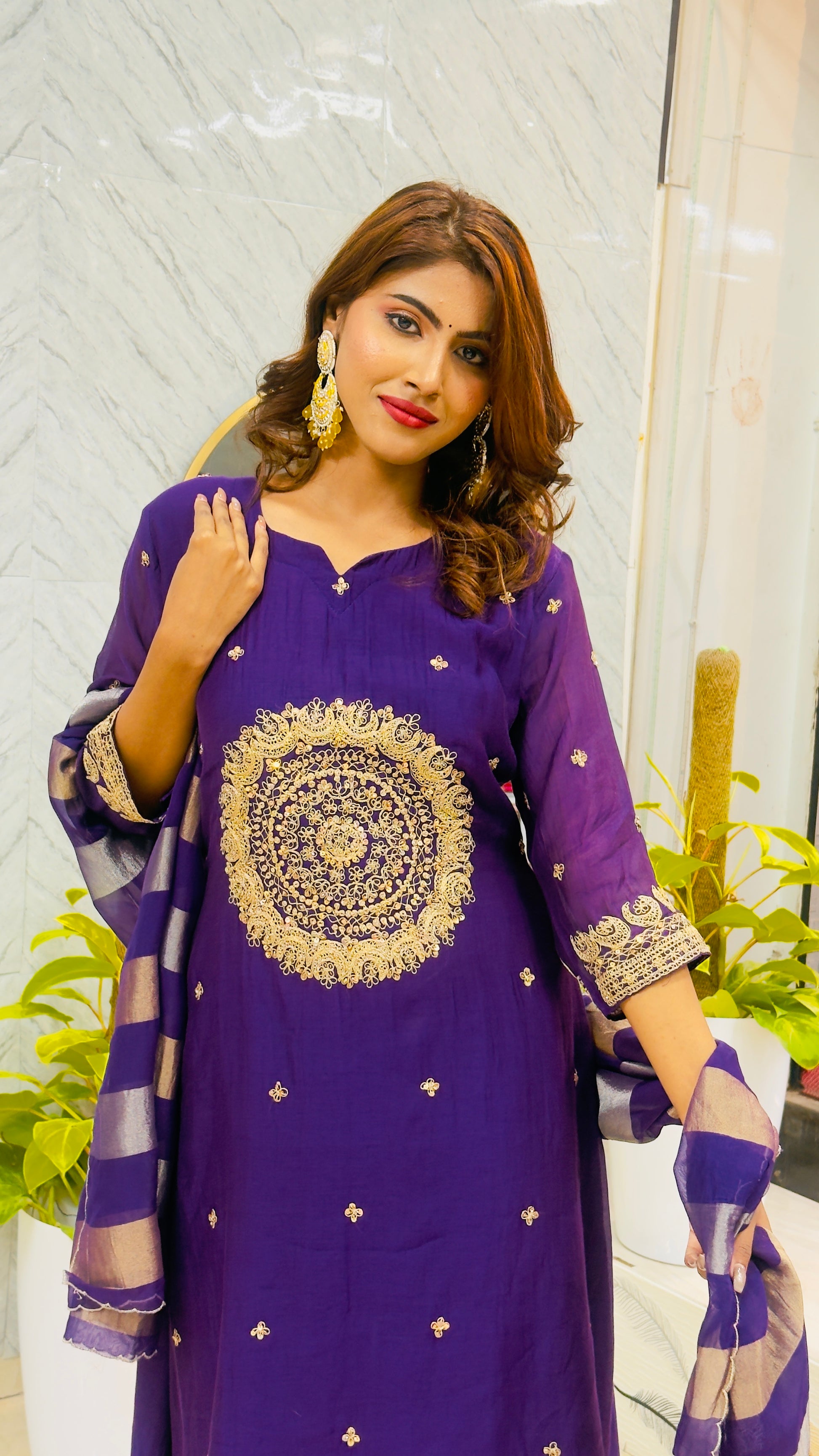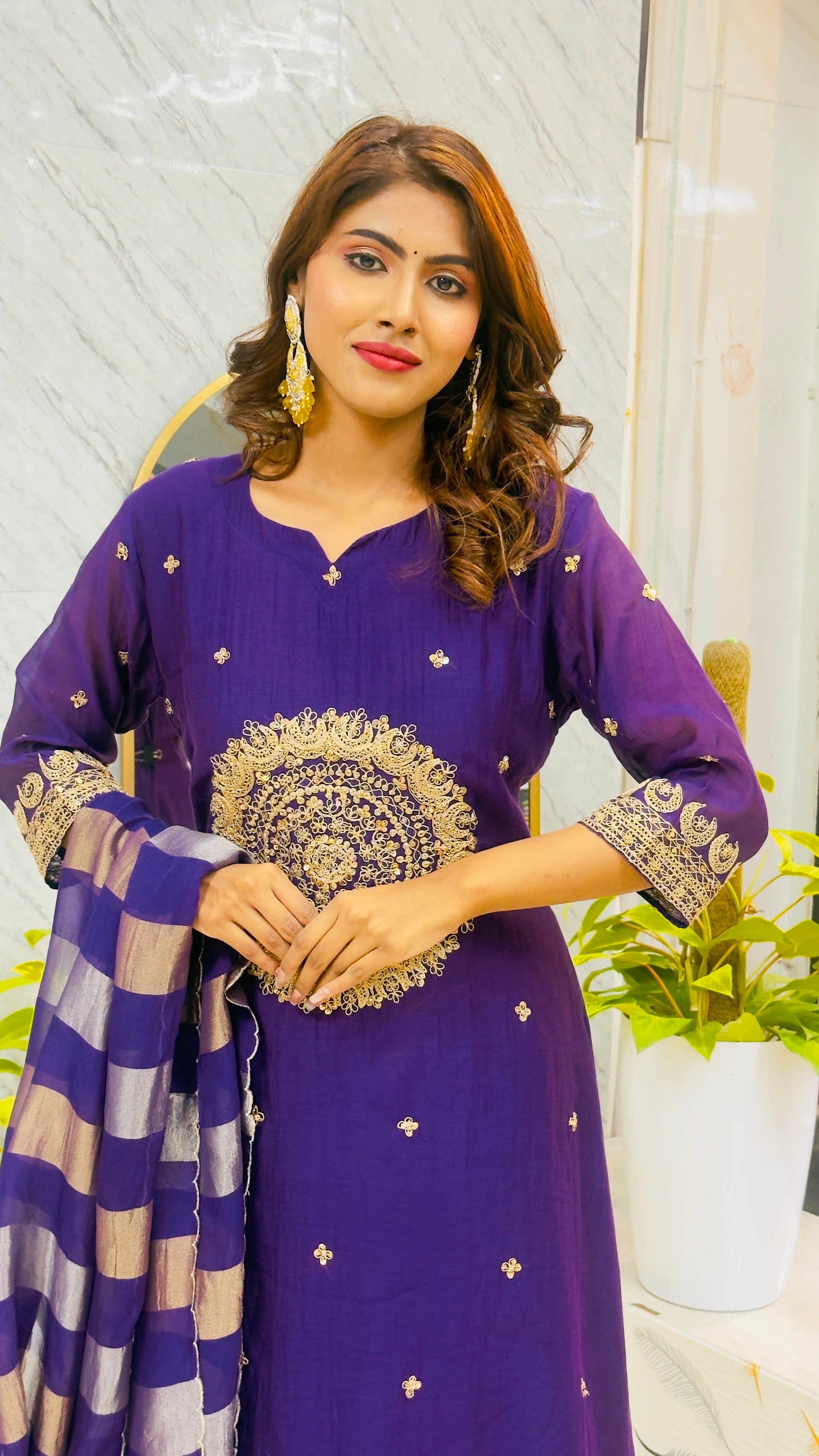 Premium Mul Chanderi with Zari Work & Tissue Dupatta - Purple