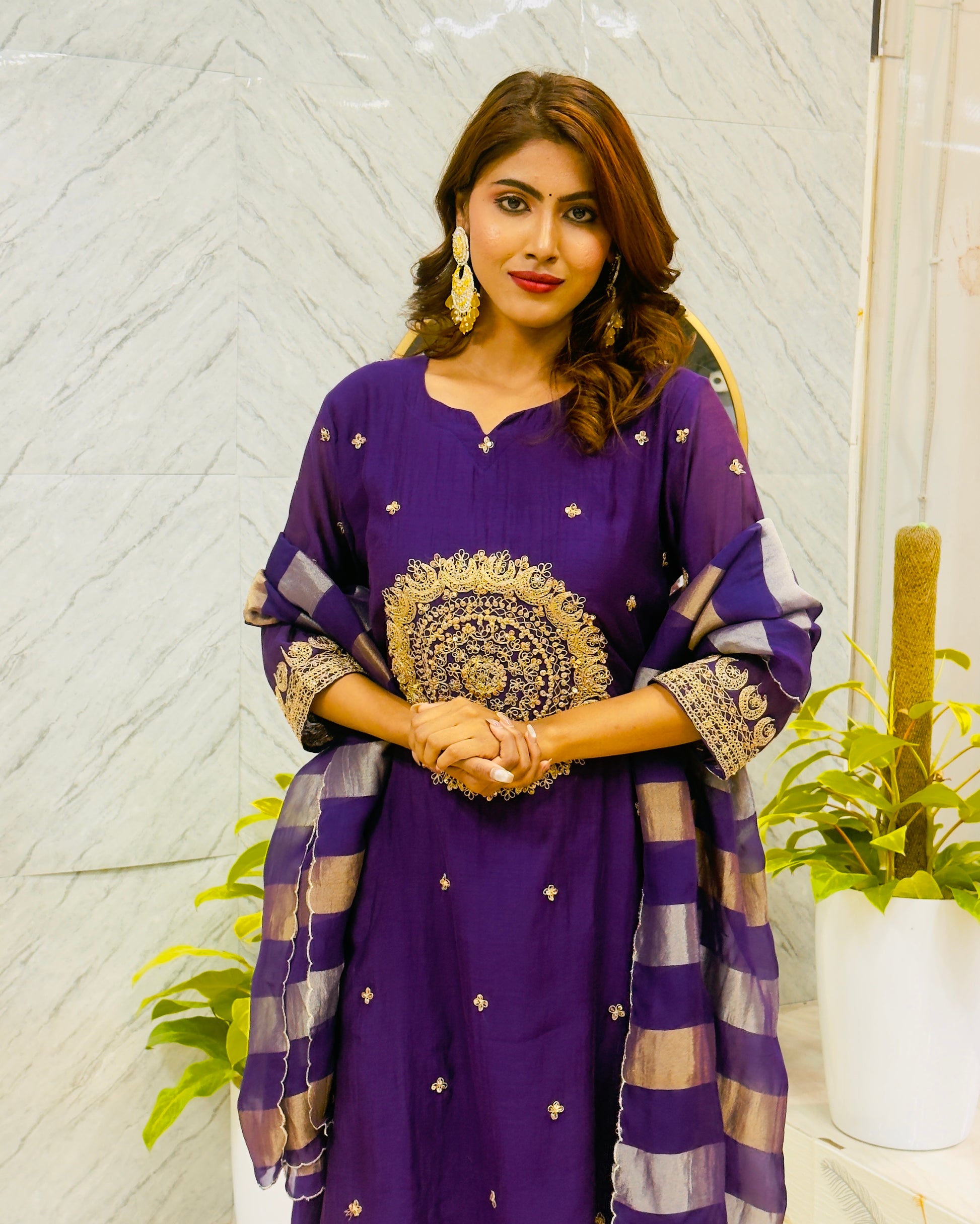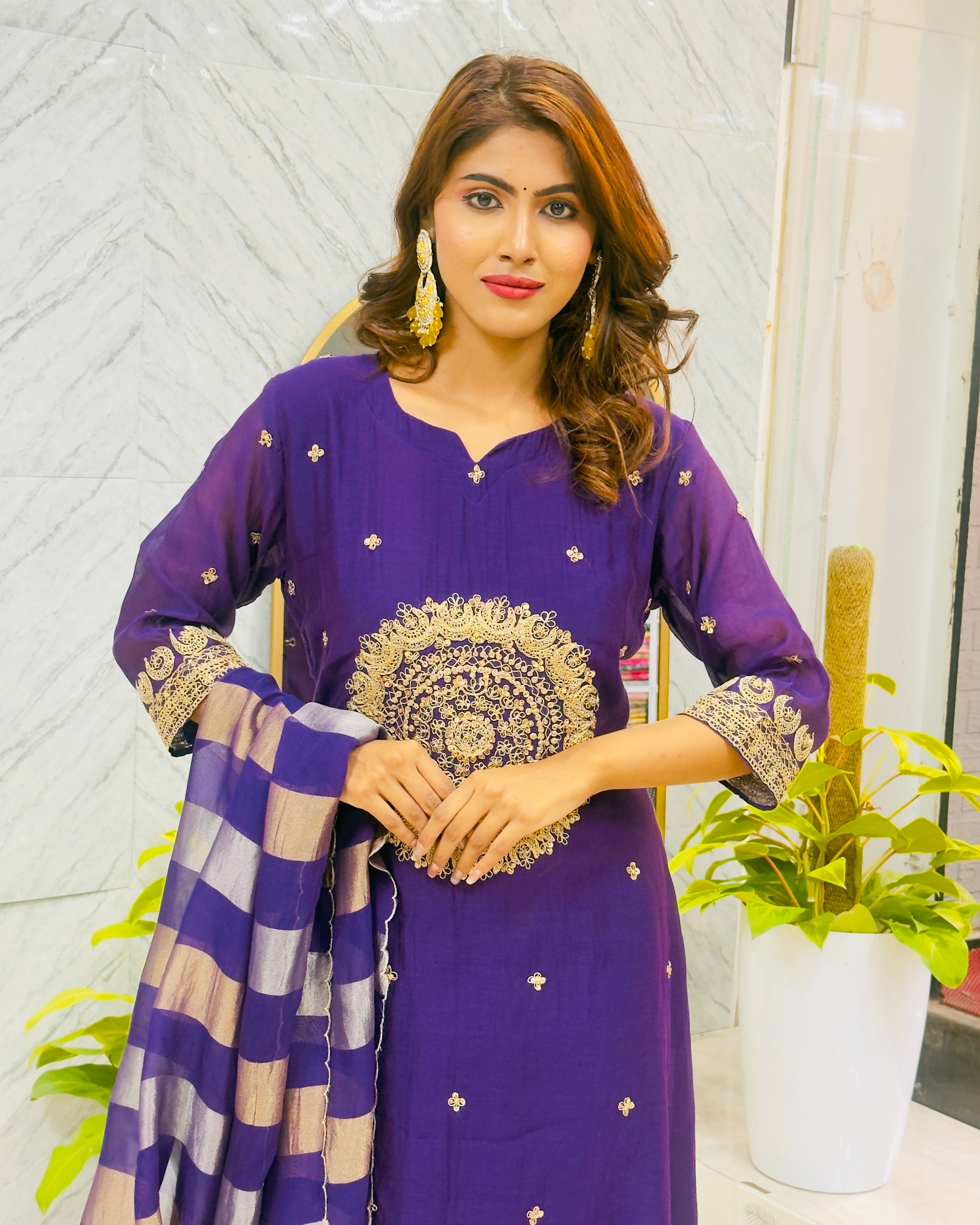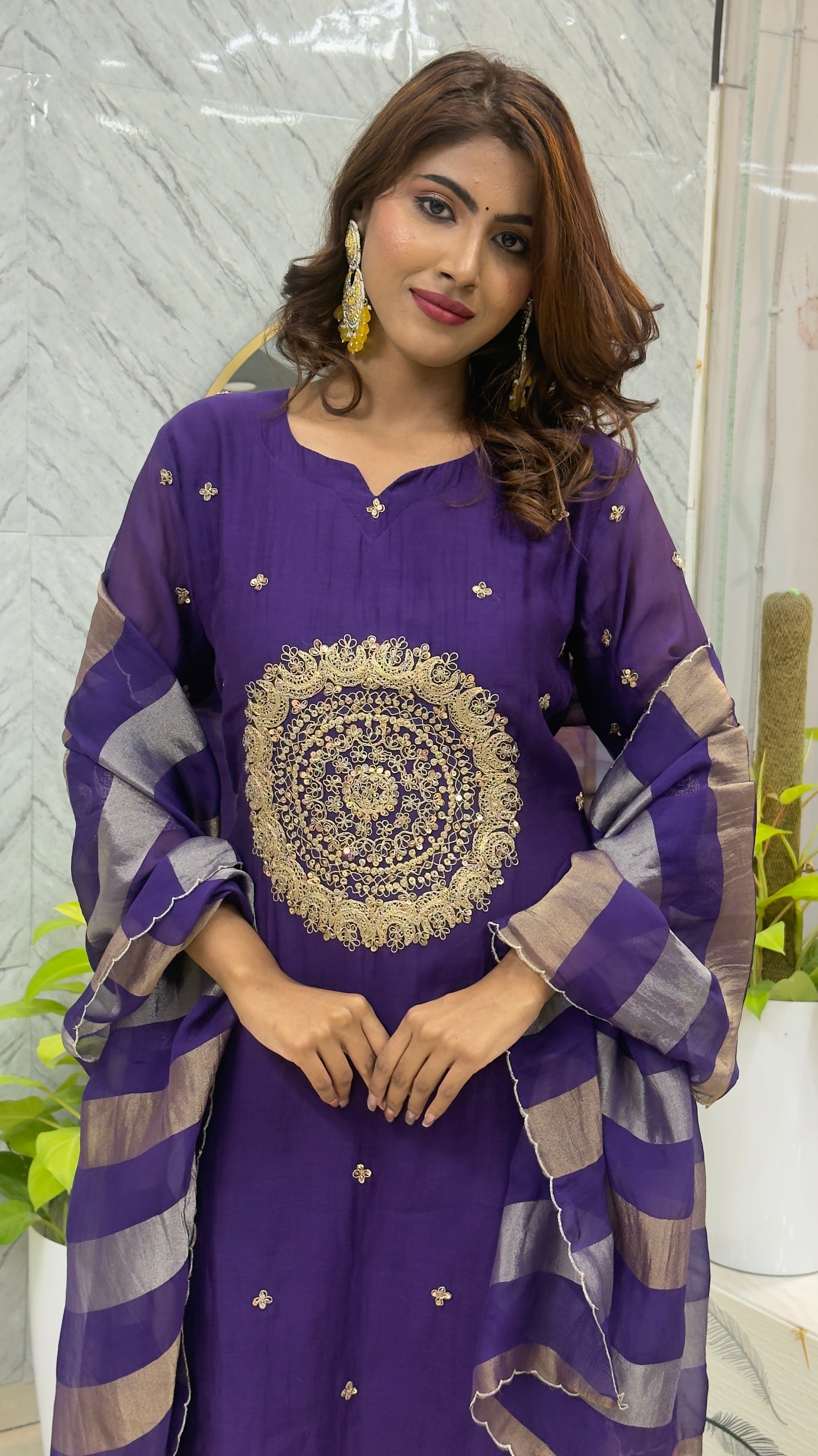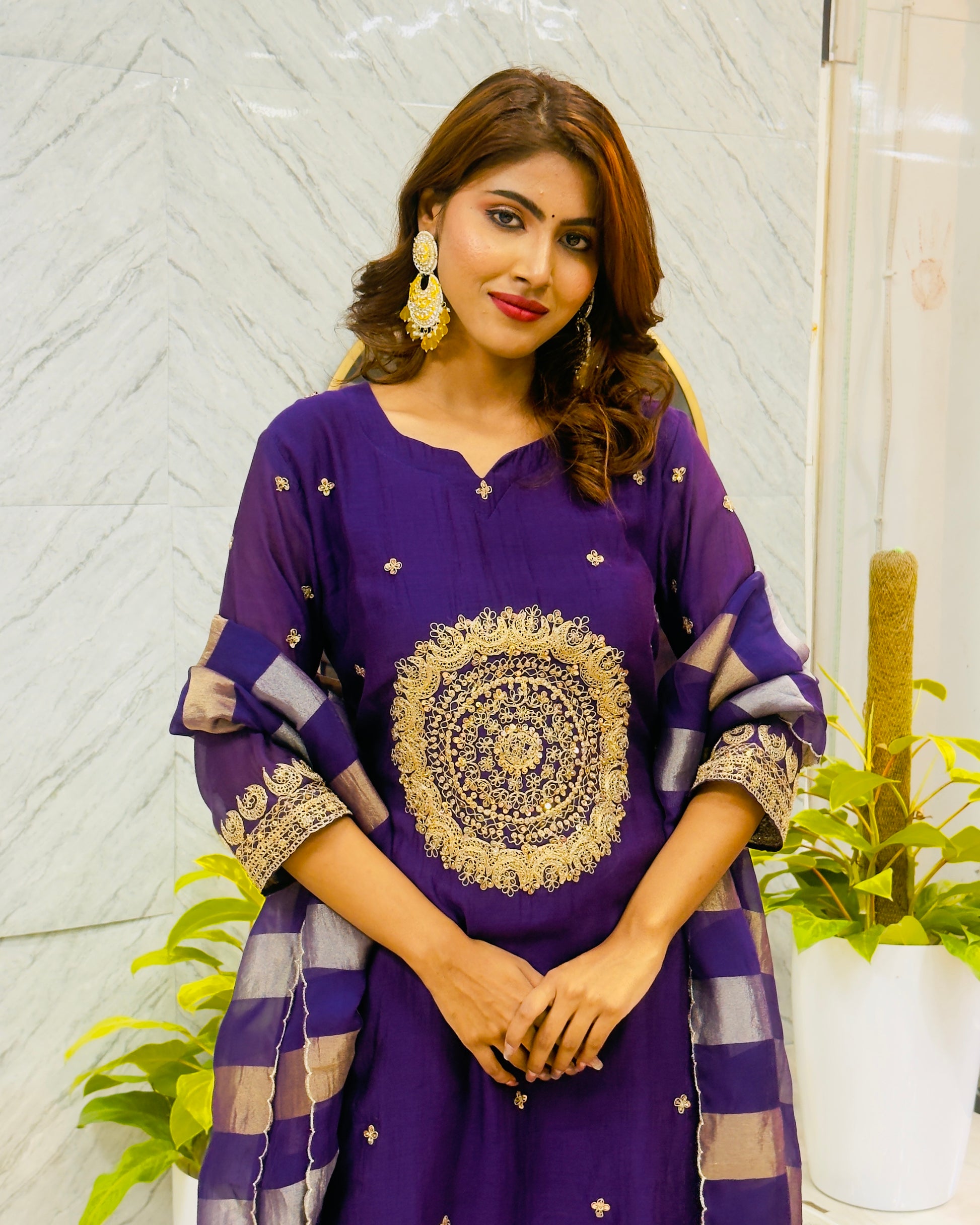 Premium Mul Chanderi with Zari Work & Tissue Dupatta - Purple