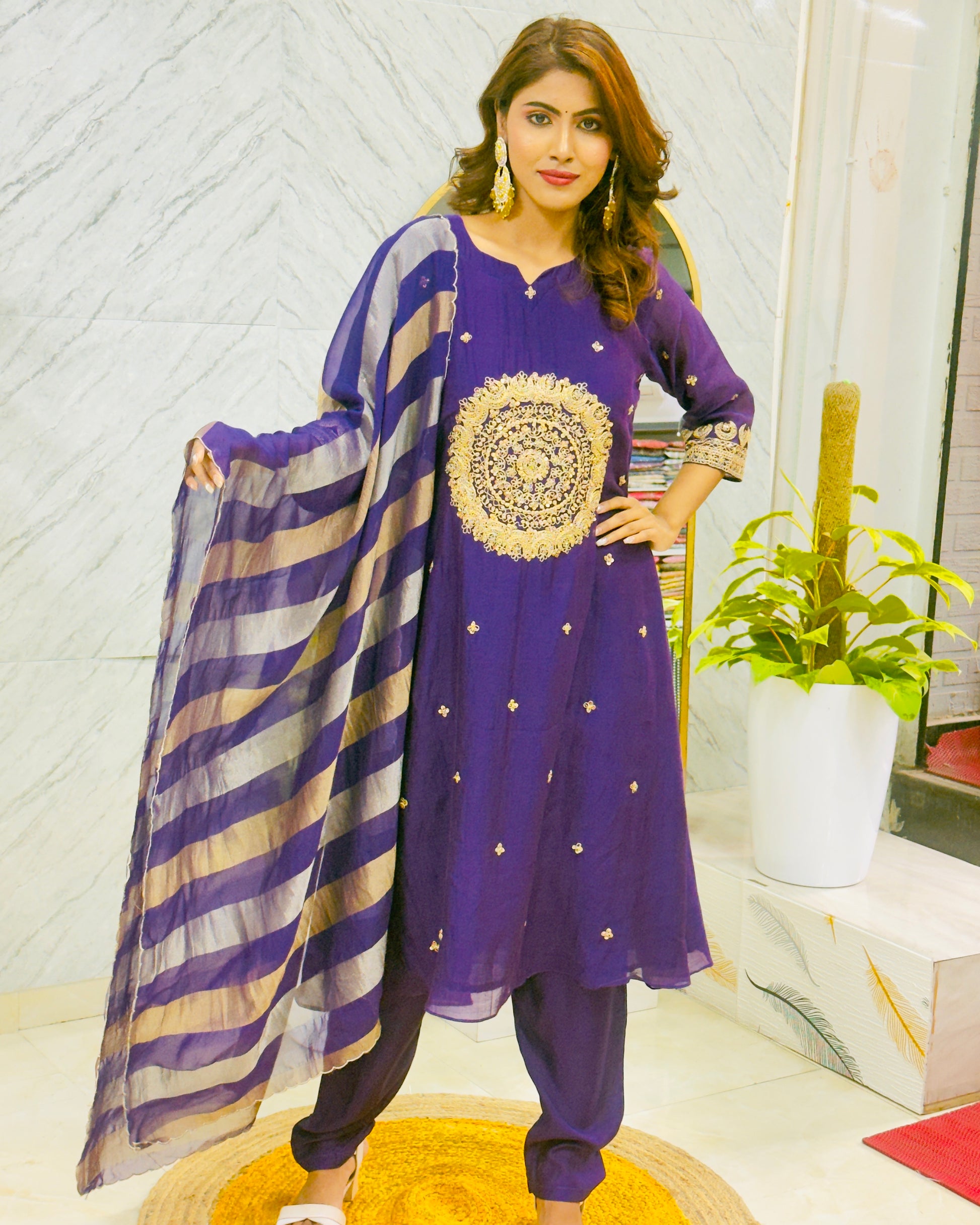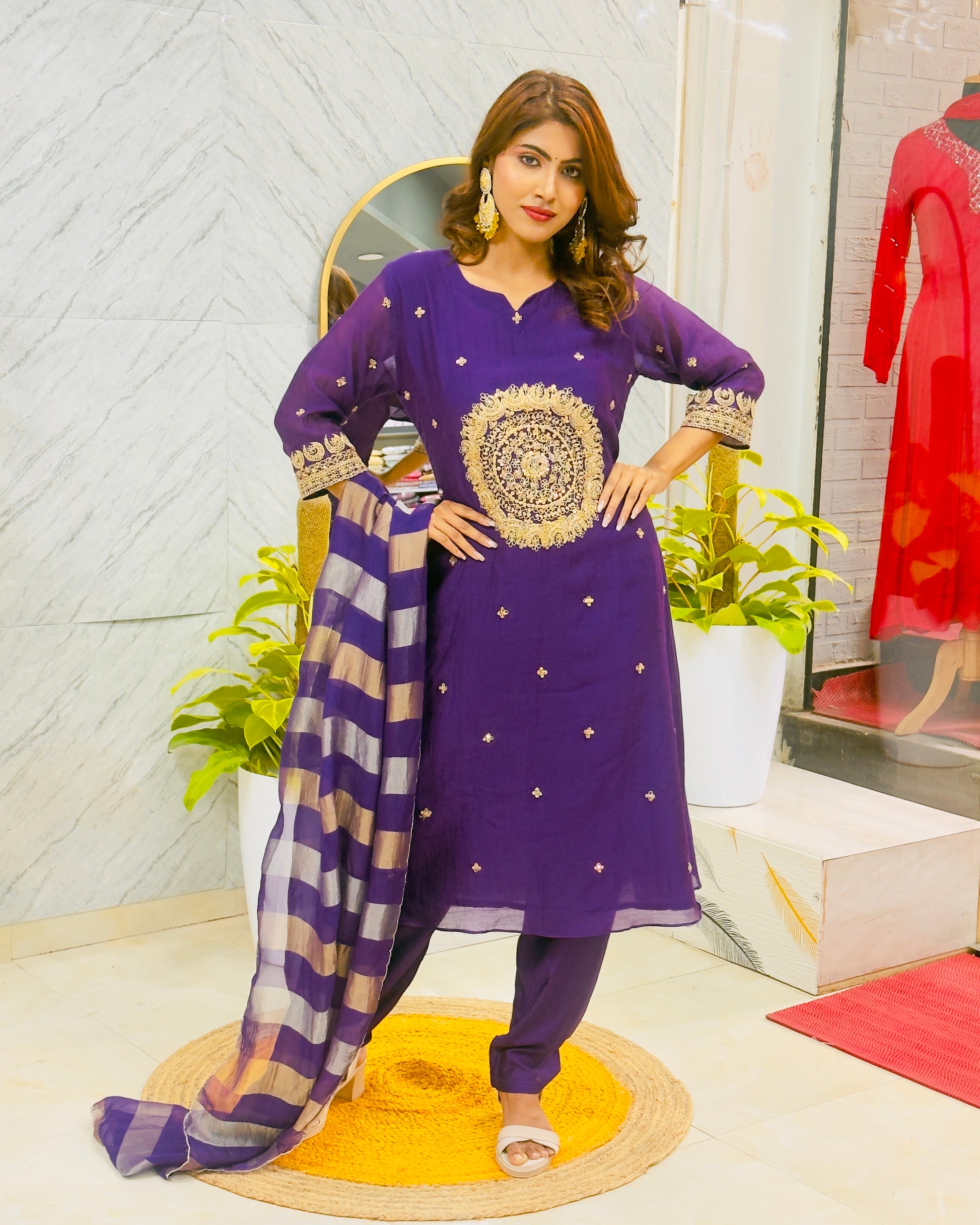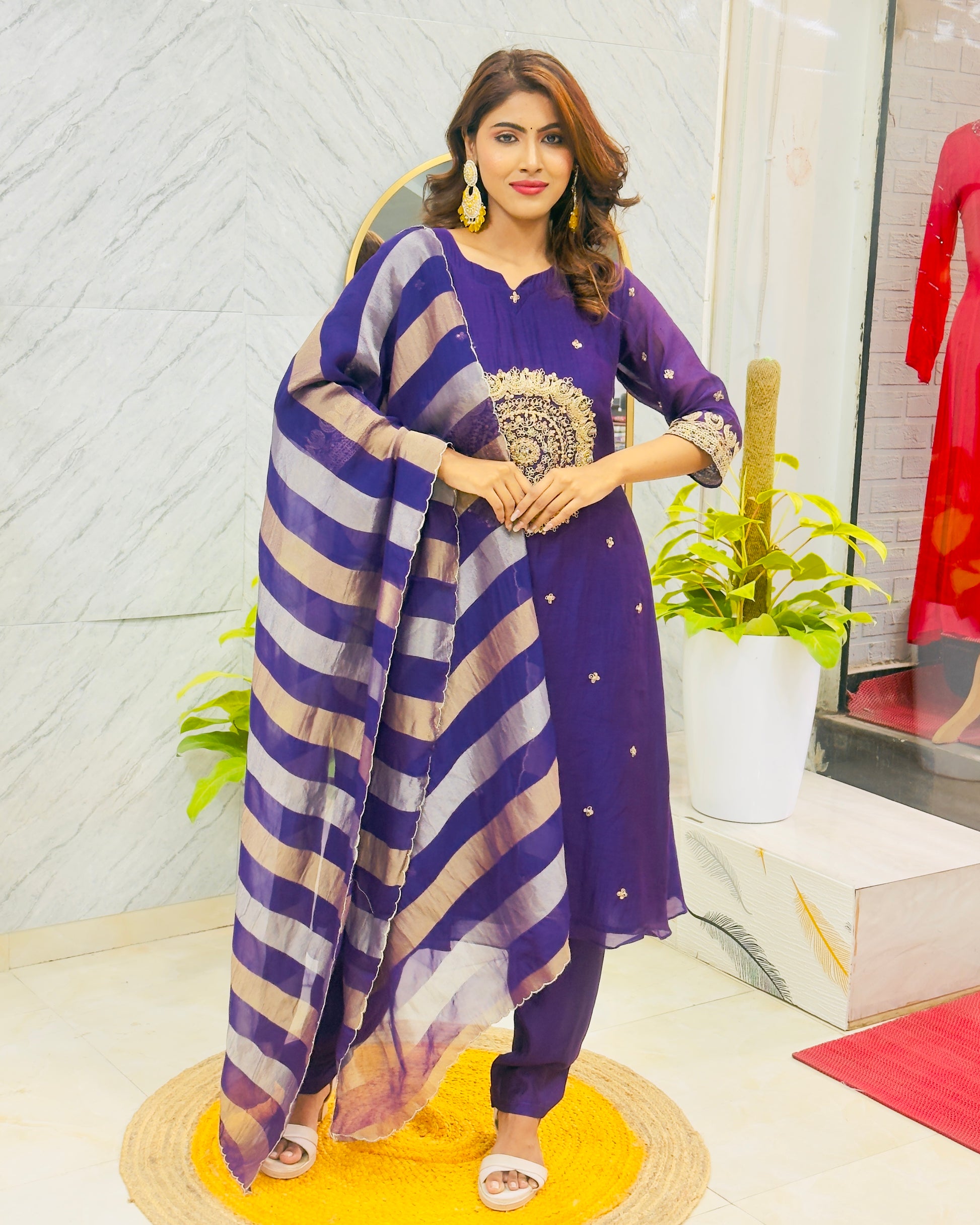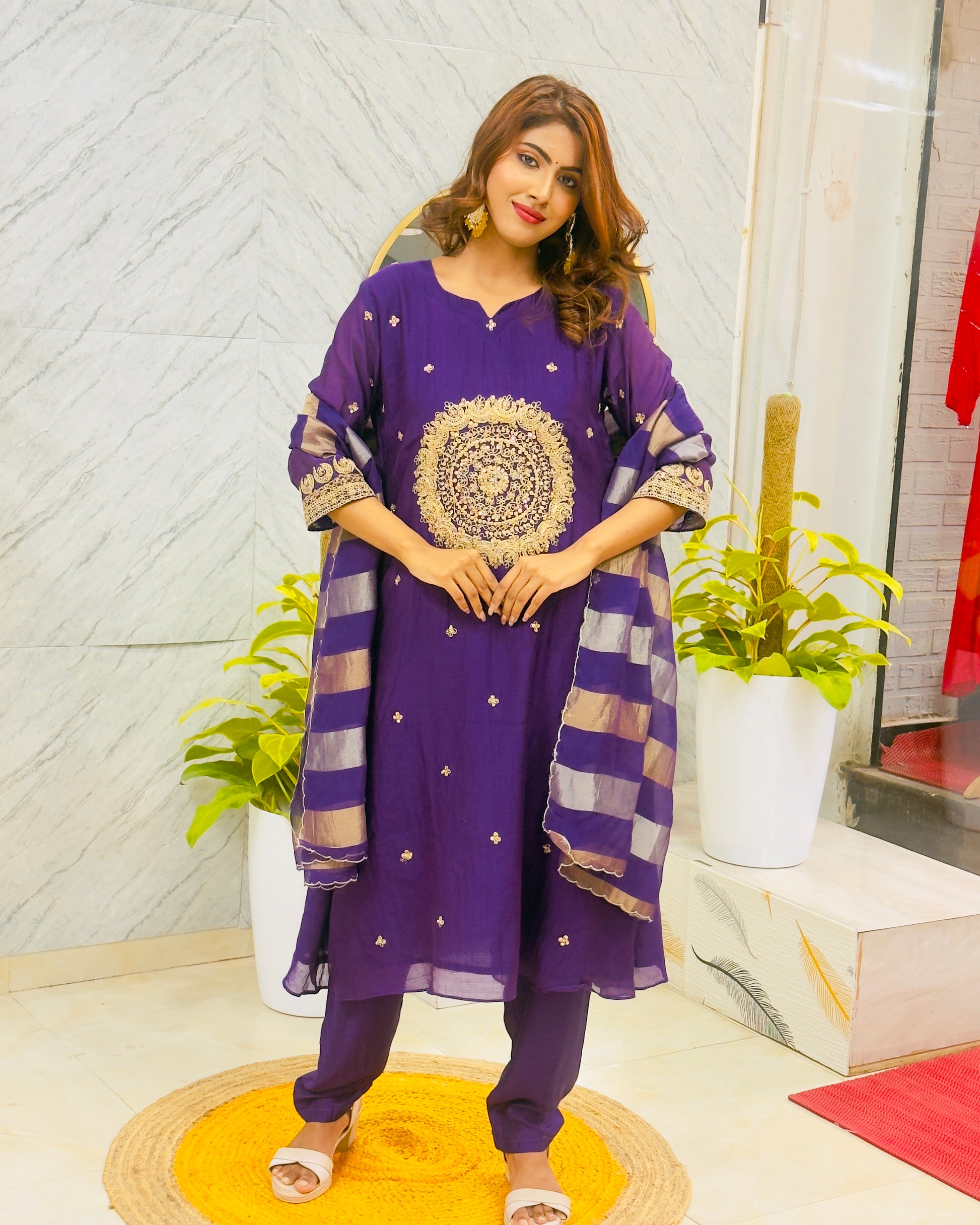 Premium Mul Chanderi with Zari Work & Tissue Dupatta - Purple