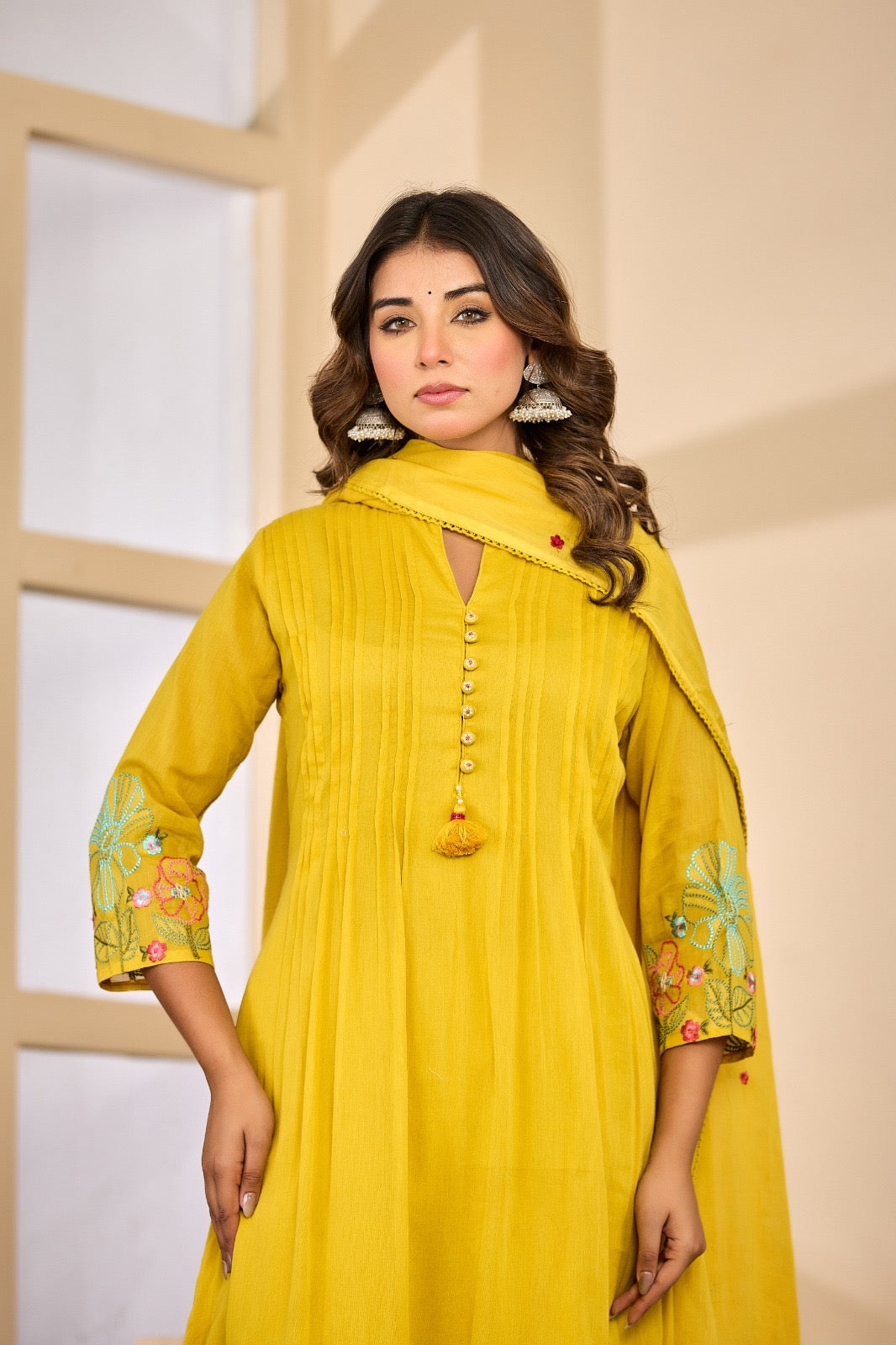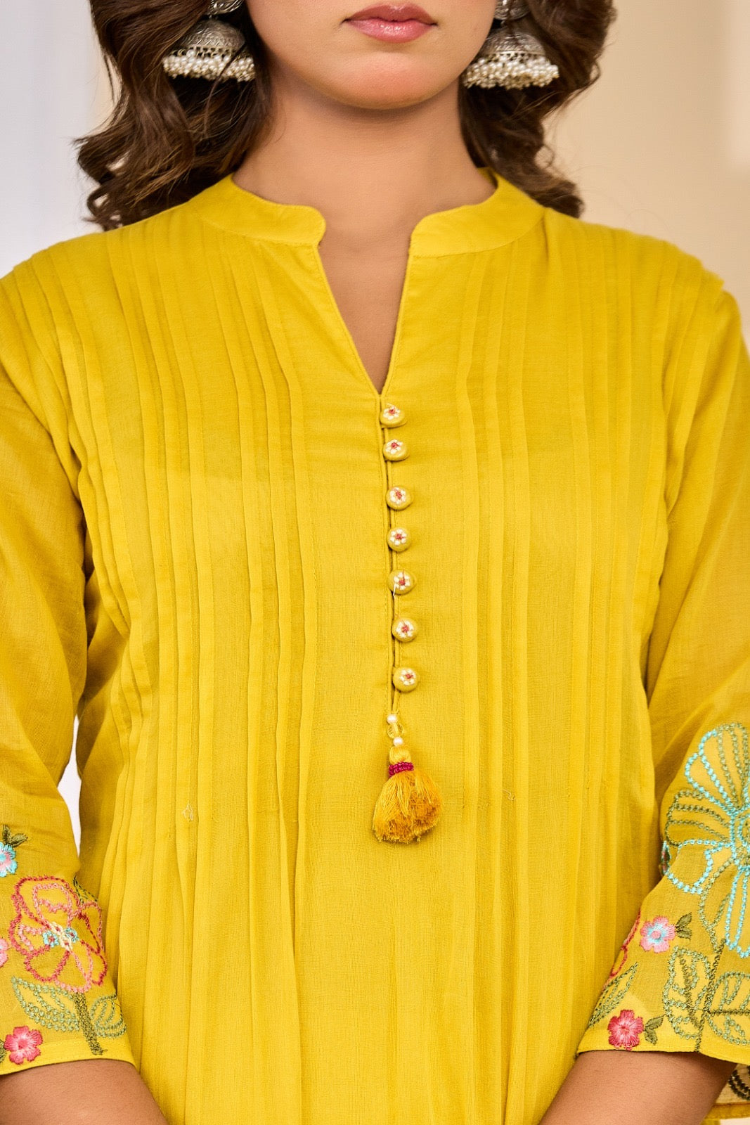Mustard Yellow Mul Cotton Kurta Set