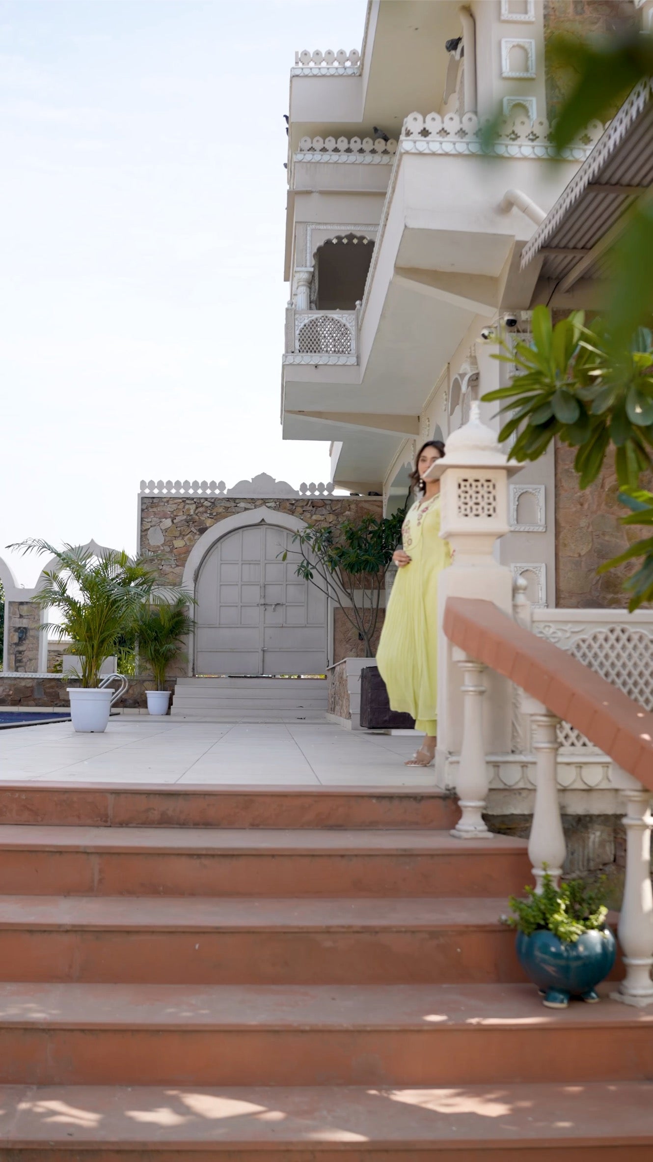 The outfit is paired with a stunning digital printed organza dupatta, adorned with vibrant floral patterns that bring a fresh and luxurious contrast to the soft lemon yellow base. Lightweight yet statement-making, this ensemble is perfect for festive occasions, daytime celebrations, and elegant gatherings.